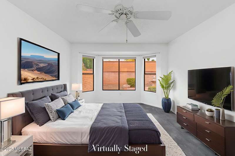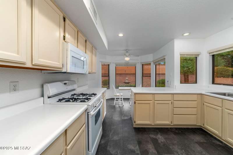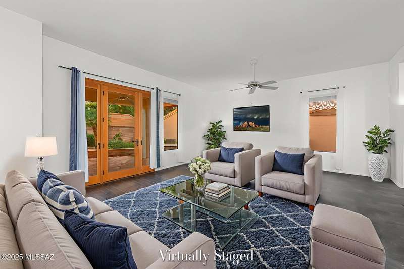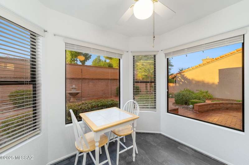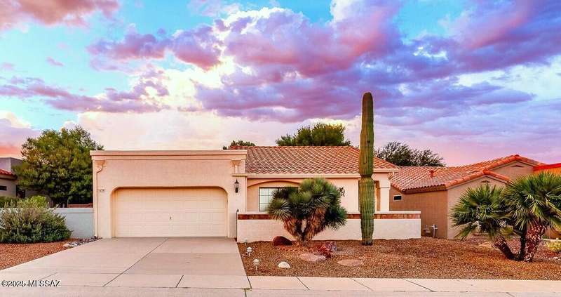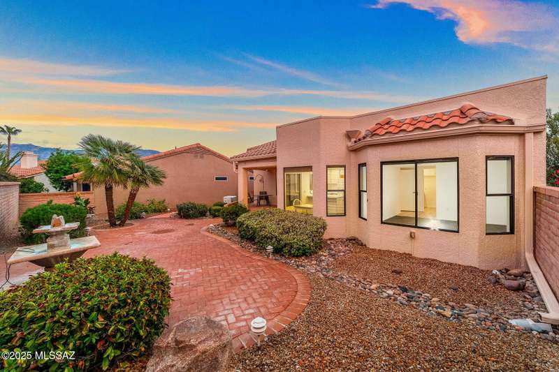 Sun City Oro Valley Bright & Beautiful Meridian Model. Wecome Guests through your walled Front Porch w/ Magnificent Catalina Mountain Views and pretty Path Lighting. This cheefrul 1,328 sq ft 2BR / 2 BA home features an XL Living / Dining room leading out to your very private rear Oasis with a charming Covered Patio, extended Paver Patio & flowing Fountain. Your Crisp White Kitchen has many cabinets & a dining nook. Wonderful split Bedroom floorplan has Owner's Suite w/ Walk-in Closet. BR 2 looks out to the Majestic Catalina Mountains. The entire home is Frenshly Painted & has new Pergo Flooring throughout. There is also a whole house Generator! New Roof 2019. Sun City Amenities include: 18 Hole Golf Course, 2 Pools, Pickleball, Tennis, Fitness Ctr. Artesian Ctr. & many Clubs to join!