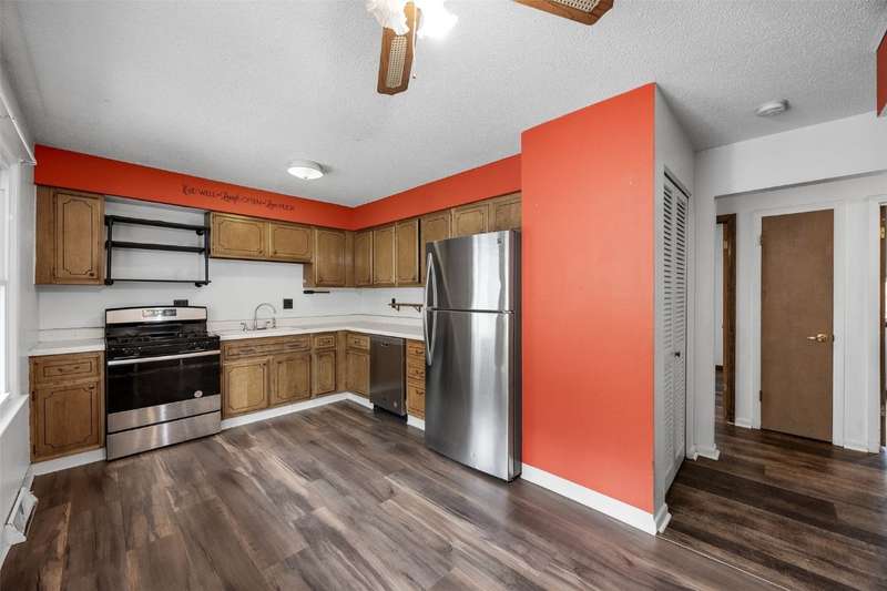Welcome to this beautifully updated 4-bedroom, 2-bath split-level home tucked away on a quiet, tree-lined street! This move-in-ready gem is loaded with recent upgrades, including a new roof, siding, and gutters, new AC unit, updated water heater, and a fully remodeled tub/shower upstairs. You'll love the gleaming hardwood floors on the upper level, fresh flooring in the lower level, and a completely reimagined covered back porch—perfect for relaxing or entertaining. The main level features a spacious, open-concept kitchen and living area filled with natural light, along with three generous bedrooms. Downstairs, the fully finished walkout lower level offers a cozy family room, a fourth bedroom, a full bathroom, and a dedicated laundry area. Step outside and enjoy the serene backyard from your upgraded covered porch, surrounded by mature trees that provide beauty and privacy. Homes like this don’t last long—schedule your showing today!