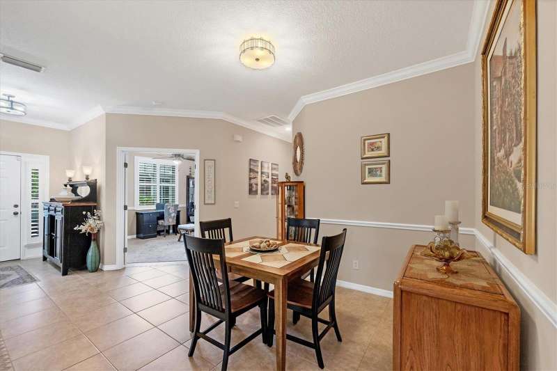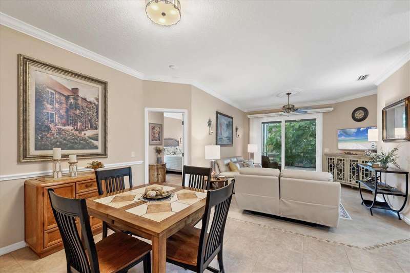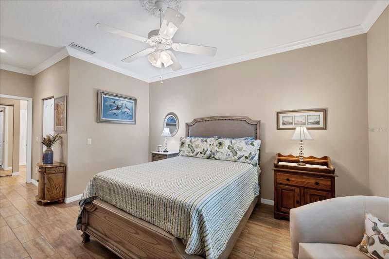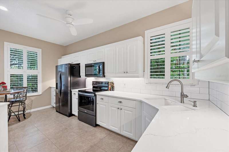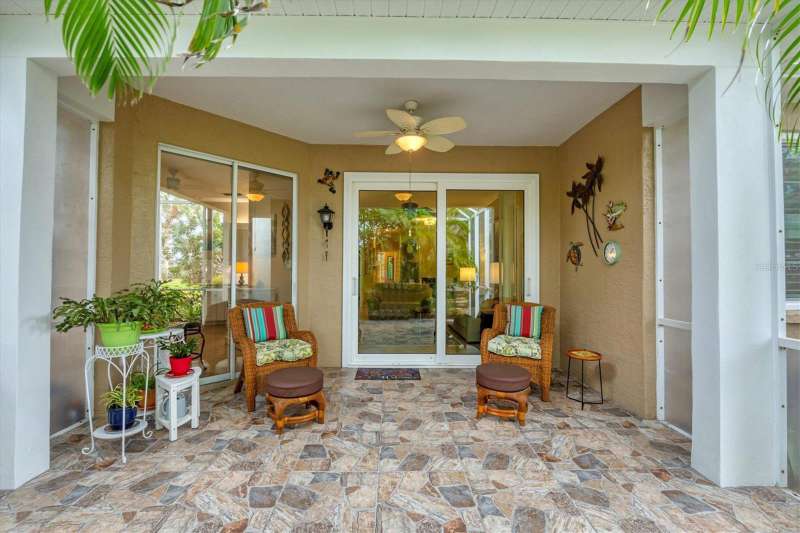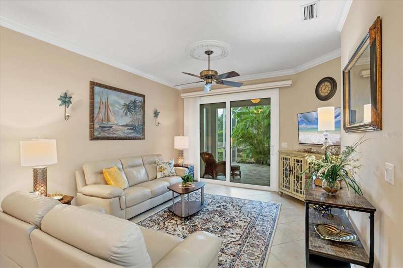 This meticulously maintained and beautifully updated villa offers comfort and style within the desirable St. Andrews Park community of The Plantation Golf & Country Club. A soft, neutral palette sets the tone throughout, complemented by many thoughtful updates and added features that make this home move-in ready. All windows are storm- and weather-safe, providing year-round peace of mind. Inside, you’ll find all-tile flooring for elegance and easy maintenance, enhanced by crown molding and quartz countertops throughout the home. Updated fixtures, vanities, and lighting elevate the design, while the open layout flows seamlessly to the extended lanai—where lush palms and mature landscaping create a private, serene setting, ideal for relaxing mornings or entertaining guests. With its blend of quality updates, timeless finishes, and a sought-after location, this villa delivers both refined living and lasting value. A variety of golf and social memberships at The Plantation are available but not mandatory. Conveniently located near The Wellen Park Town Center, Atlanta Braves Training Facility, local beaches and downtown Venice. Whether you're seeking a full-time residence, a seasonal getaway, or an investment opportunity, this home is the home for you. Schedule your private showing today and discover the lifestyle waiting for you at The Plantation Golf & Country Club!