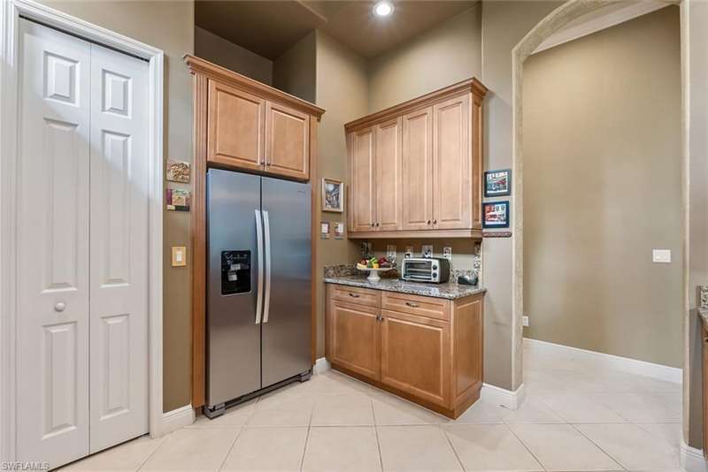 Welcome to this beautifully maintained Martinique model in the private gated enclave of Mango Cay at The Strand. Perfectly positioned at the end of a quiet cul-de-sac with no neighboring house next door, this home sits on the best lot in Mango Cay, offering peaceful golf course views and total privacy. Ownership includes a social membership at The Strand Golf and Country Club, giving you instant access to a true resort lifestyle. Inside, this inviting residence blends timeless charm with thoughtful upgrades throughout. Enjoy a spacious open floor plan with high ceilings, crown molding, lighted tray ceilings, and elegant 18-inch diagonal tile floors. The kitchen is finished with granite countertops, stainless steel appliances, and generous cabinet space, complemented by a wet bar for easy entertaining. Additional features include a tile roof, central vacuum, wood shelving in closets, full storm protection with impact glass and roll-down shutters, and a two-car garage. Step outside to