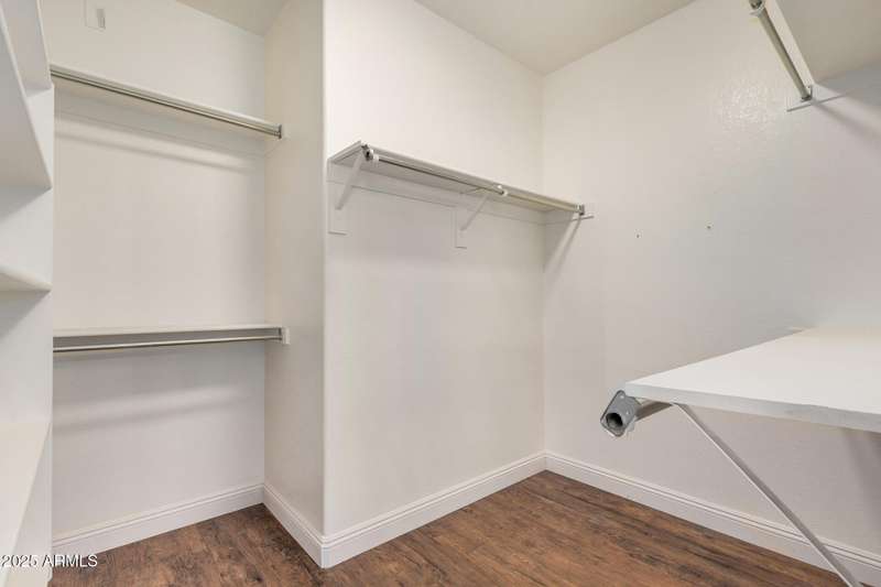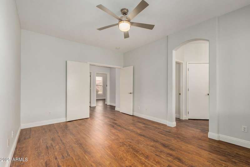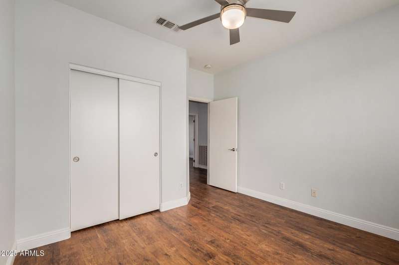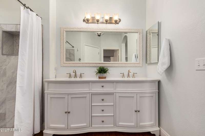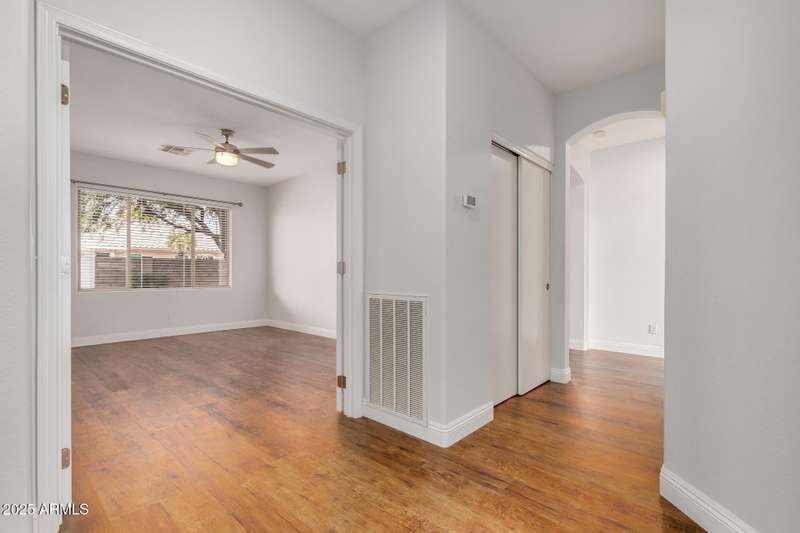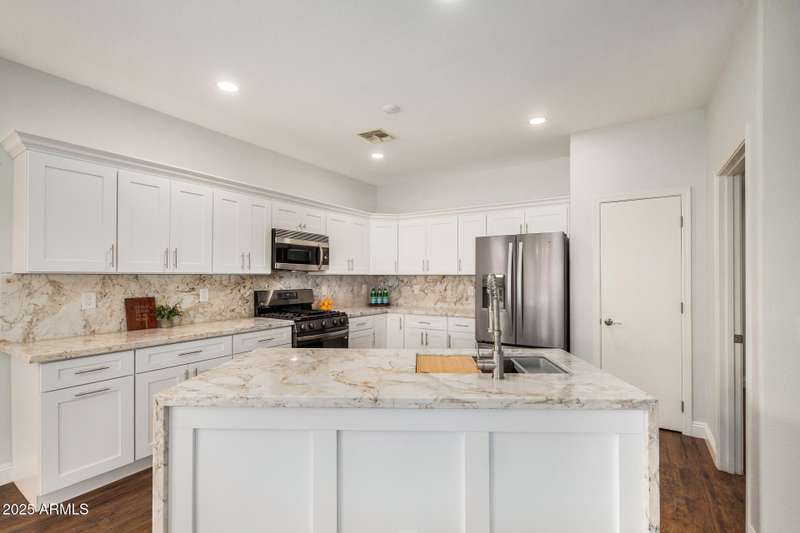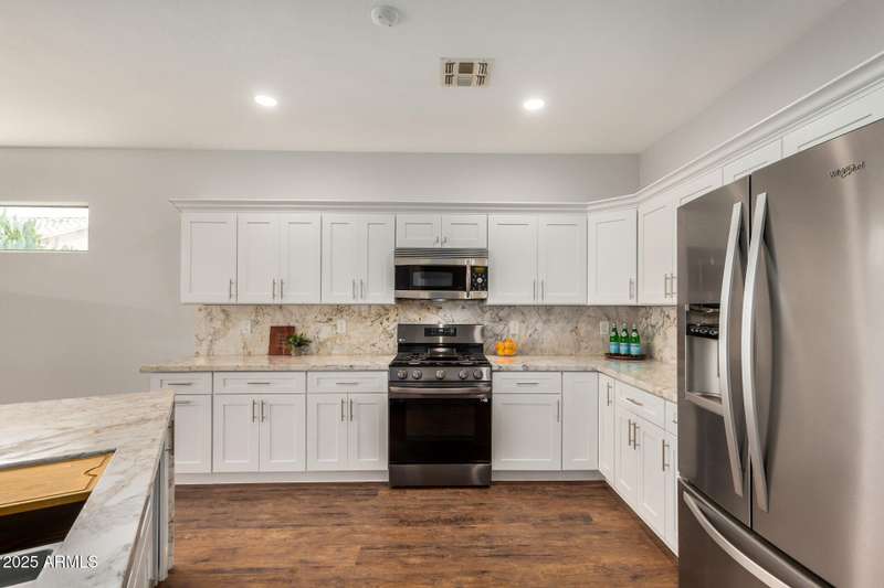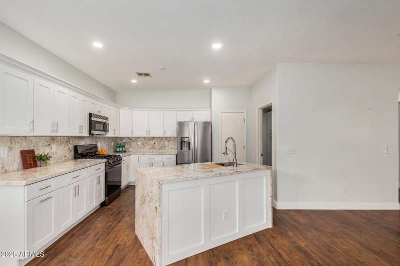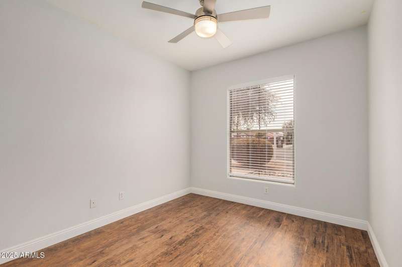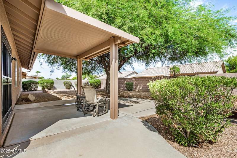 New AC AND ROOF!! Meticulously renovated 3 bedroom, 2 bathroom home situated on a spacious corner lot in Springfield, one of the Valley's premier 55+ guard gated golf communities. The stunning remodel centers around the chef's kitchen, showcasing White Shaker soft-close cabinetry, elegant neutral granite with a waterfall island, stainless steel appliances, and custom LED over-cabinet lighting. Luxury vinyl plank flooring flows seamlessly throughout the home for a modern look and easy maintenance. The primary suite is a true retreat with a beautifully upgraded bathroom featuring a walk-in shower, dual-sink quartz vanity, and plenty of storage. Step outside to your private, fully enclosed backyard with lush mature landscaping, an extended covered patio, and a storage shed. Enjoy resort-style living every day with access to Springfield's incredible amenities, including golf, pools, spa, clubhouse, fitness center, pickleball, tennis, and more. This home blends thoughtful upgrades with the lifestyle you've been waiting for....don't miss it!