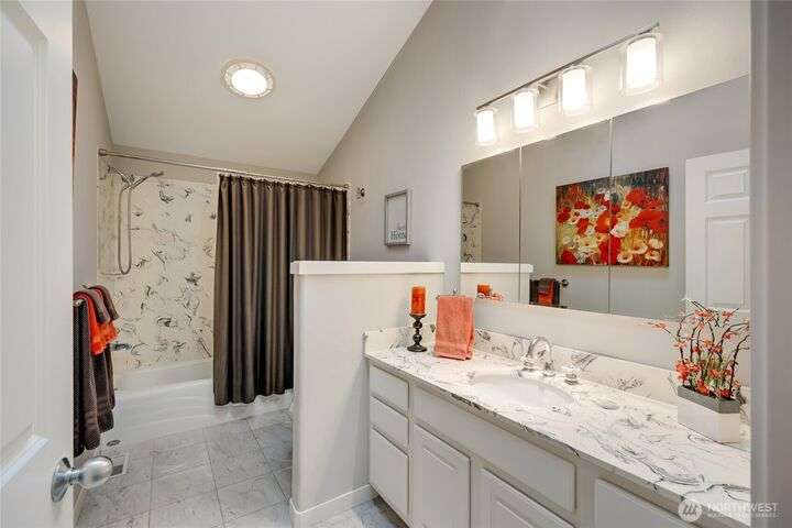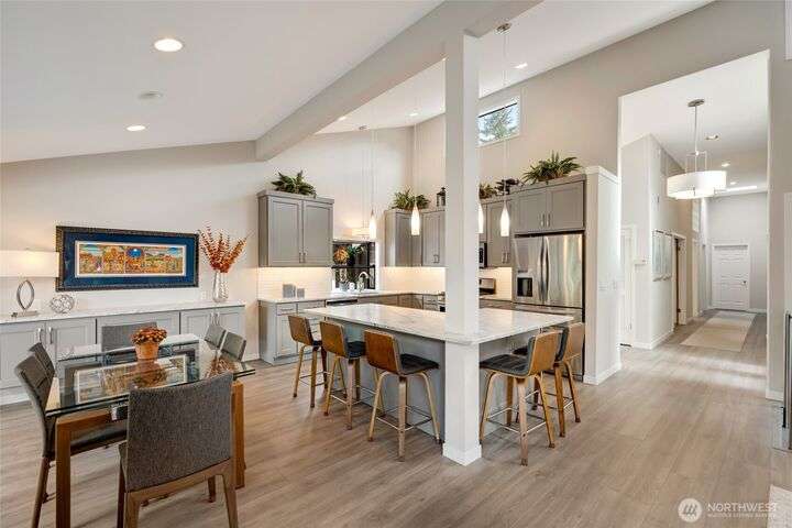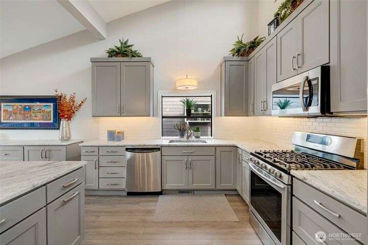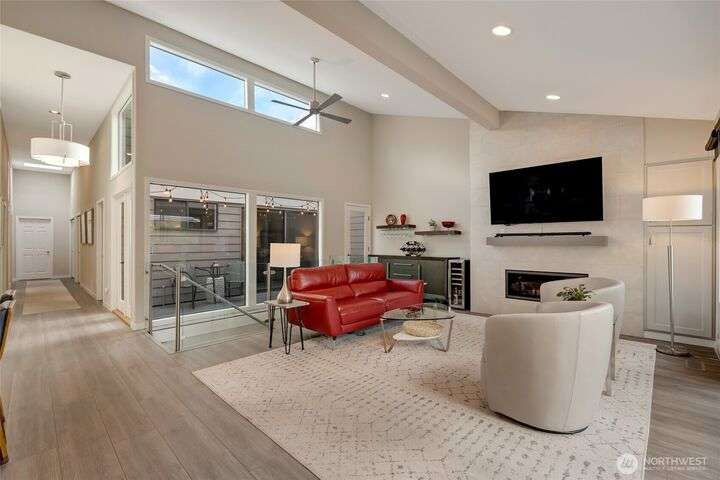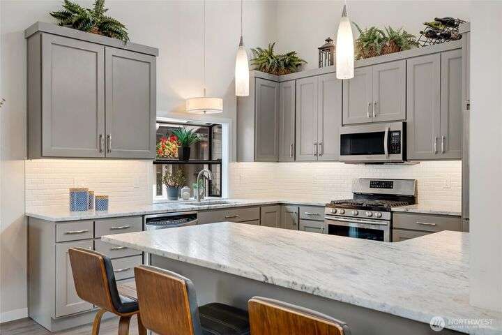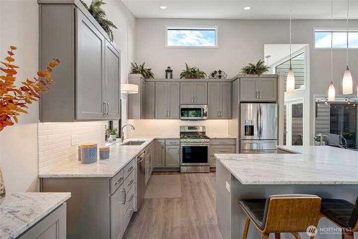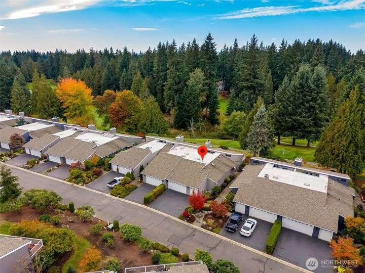 Welcome to Fairway Village at Mill Creek - where luxury meets lifestyle! This beautifully updated 4-bedroom, 2.5-bath condo offers 2,565 sq ft of refined living space with golf course frontage overlooking the 12th green and the 13th tee of Mill Creek Country Club. Inside, you'll find a newly renovated kitchen with modern finishes, updated flooring throughout, and a cozy gas fireplace. The flexible floor plan offers comfort and convenience, with one-level living enhanced by a spacious, finished basement. Enjoy a 2-car garage w/ a separate golf cart bay – a rare find! All this, with close proximity to walking trails and the amenities of Mill Creek Town Center.