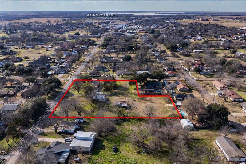 Prime location with endless possibilities! This 4 bedroom 2 bath home is located in the heart of Mabank, both a thriving and growing community! This spacious home offers updated texture, paint, and gorgeous hardwood flooring throughout. Nice size eat in kitchen with separate dining area. Generous sized bedrooms and baths. Multiple covered porches with one offering a ramp for handicap accessibility. The property consists of 1.96 acres and offers plenty of space for future development and gardening. Plenty of storage offered on the property with a 12x12 workshop with electricity and roll up door, a metal storage building with an attached carport, and one additional outbuilding-metal shed. The three carports on the property offer covered parking for up to 6 vehicles. This is a rare opportunity to own a home on acreage in downtown Mabank!