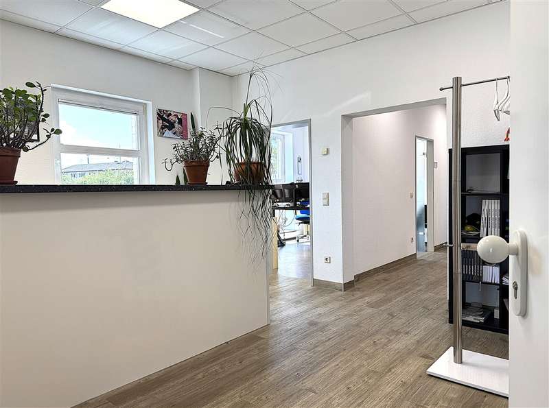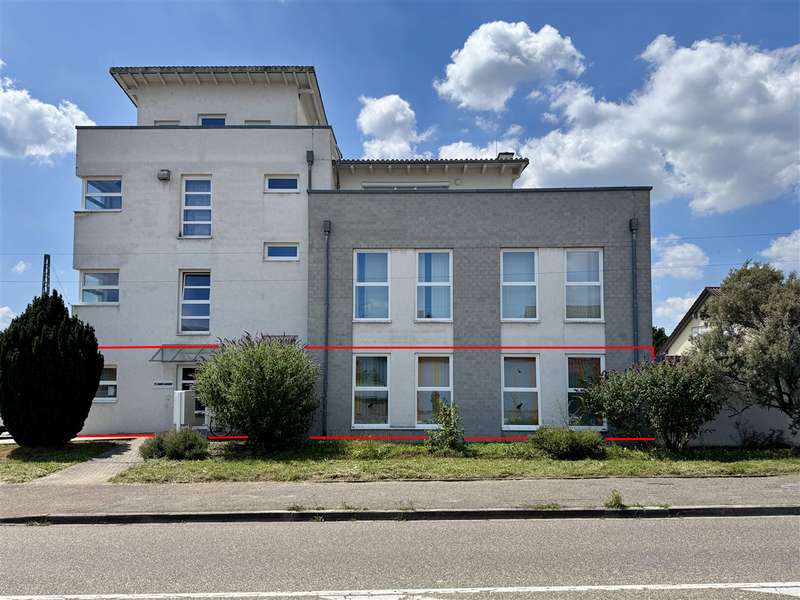 These bright office or practice rooms are conveniently located on the first floor of a modern building in Wörth. Built in 2000, the prestigious four-party building consists of three commercial units and one residential unit, which could also be rented if required. The stairwell is brightly painted and has granite flooring. An elevator connects all four floors. The office/practice rooms, which cover an area of approx. 177 m², are located at ground level. Here you will find a spacious reception area, a meeting room, six office/practice rooms, two toilets (one with a shower) and an open kitchenette. There is an archive/cellar room in the basement. Three garages are assigned to the office/practice rooms, which can be accessed from outside and inside. Two further parking spaces are available outside. In addition to the net cold rent of €1,990/month, there are 2 outdoor parking spaces for €25/parking space each and 3 garages for €50/garage each, bringing the total net cold rent to €2,190/month. The commercial unit can only be let to tenants entitled to deduct input tax. All costs (basic rent and ancillary costs) are exclusive of VAT. The operator of the commercial space could also rent an apartment on the top floor, but this would have to be applied for separately. This is advertised separately.