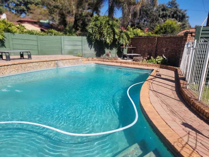 This well-maintained, low maintenance facebrick home offers space, comfort and versatility for the extended family or income potential. Nestled on a generous 1317 sqm stand, the main house features 4 spacious bedrooms and 2 bathrooms, including a main en-suite. A separate study, inviting lounge, dining room, and fully fitted kitchen with adjoining laundry ensure both practicality and comfort. The property includes 4 carports, a borehole for reliable water supply, and a sparkling swimming pool with a dedicated entertainment area – perfect for relaxing or entertaining guests. Bonus! A spacious flatlet boasts 3 bedrooms, 1 bathroom, a lounge, kitchen, and its own double garage – ideal for rental income or extended family living. This property combines lifestyle, convenience and value – don’t miss out!