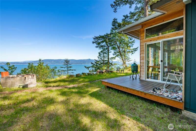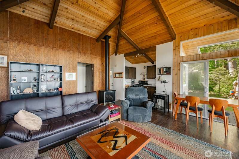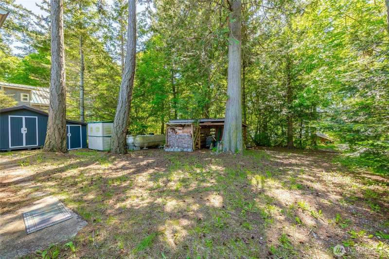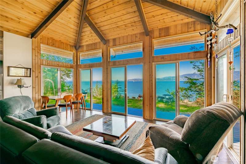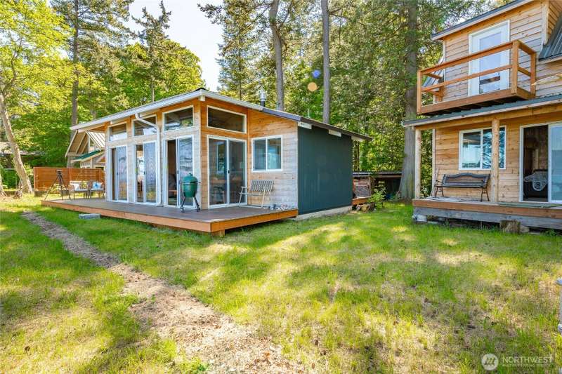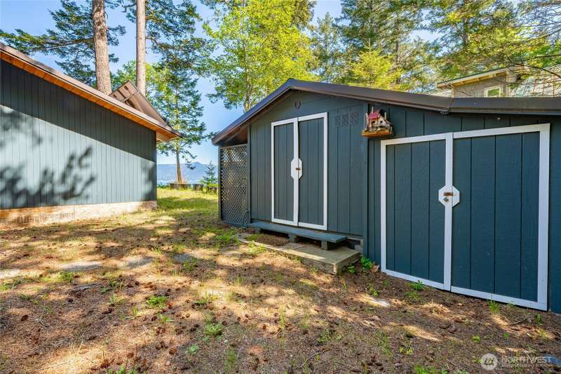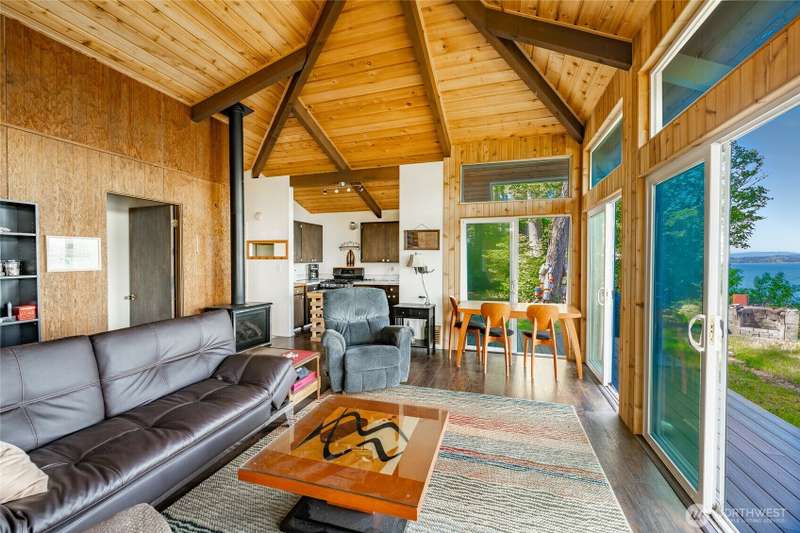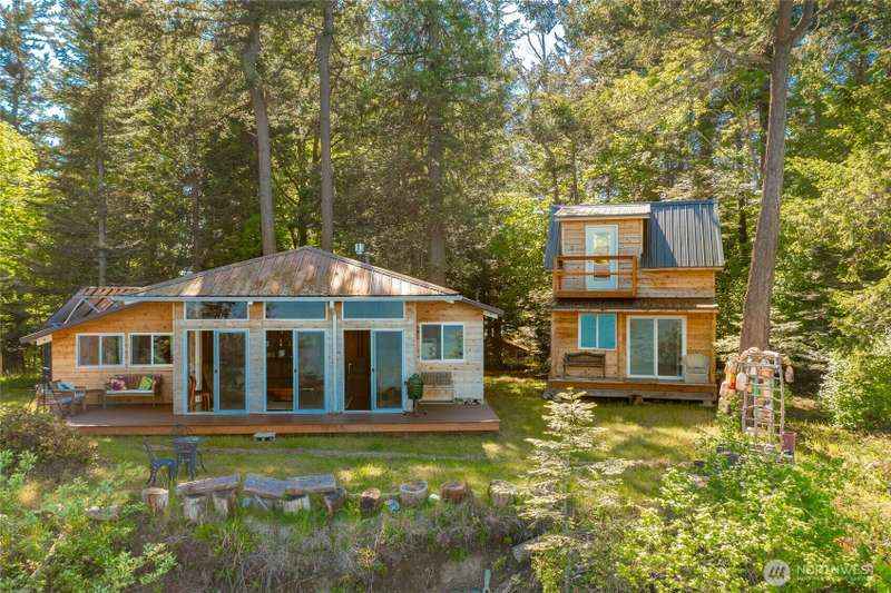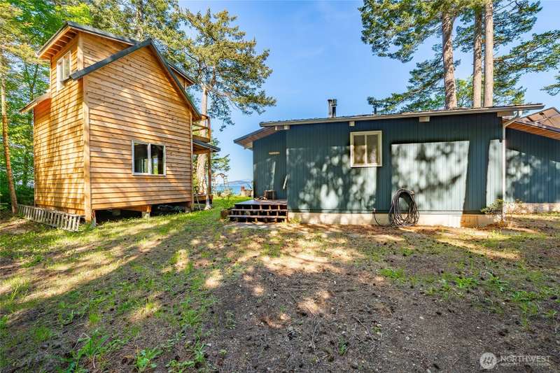 A rare chance to own a piece of Eliza Island paradise! This high-bank waterfront cabin offers stunning eastern views overlooking Bellingham Bay, the Canadian mountains, and the Chuckanut coastline. Featuring 2 bedrooms, vaulted ceilings, natural wood interior paneling, vinyl windows and sliders, and a cozy propane stove for comfort. The cabin is powered by a propane & a solar/battery inverter setup. Bonus: Shop and storage buildings provide ample space for hobbies and projects. Eliza Island maintains its charm with no VRBOs or short-term rentals allowed. Community amenities include a full-time island caretaker, multiple beach access points, a park area, and the private WA93 airstrip, making it a dream destination for outdoor enthusiasts!