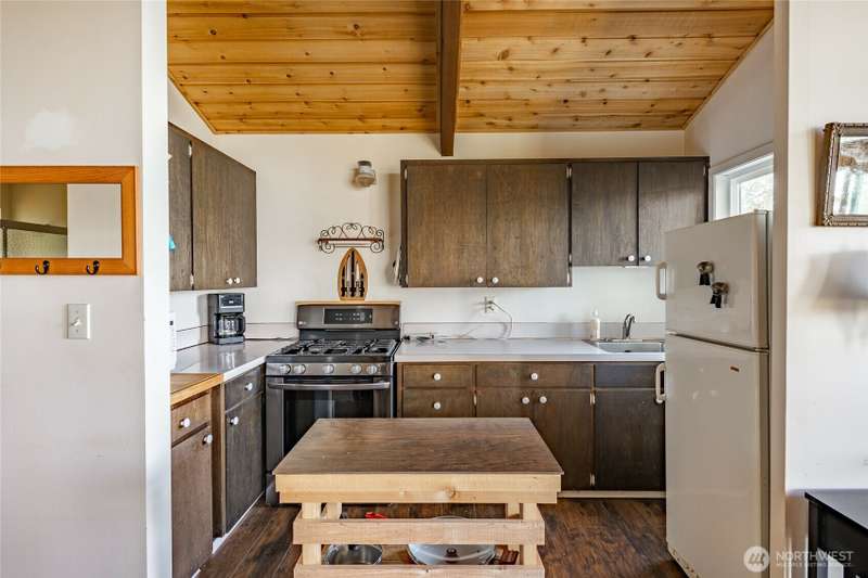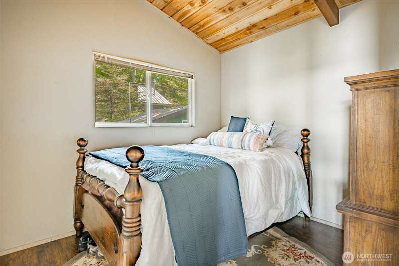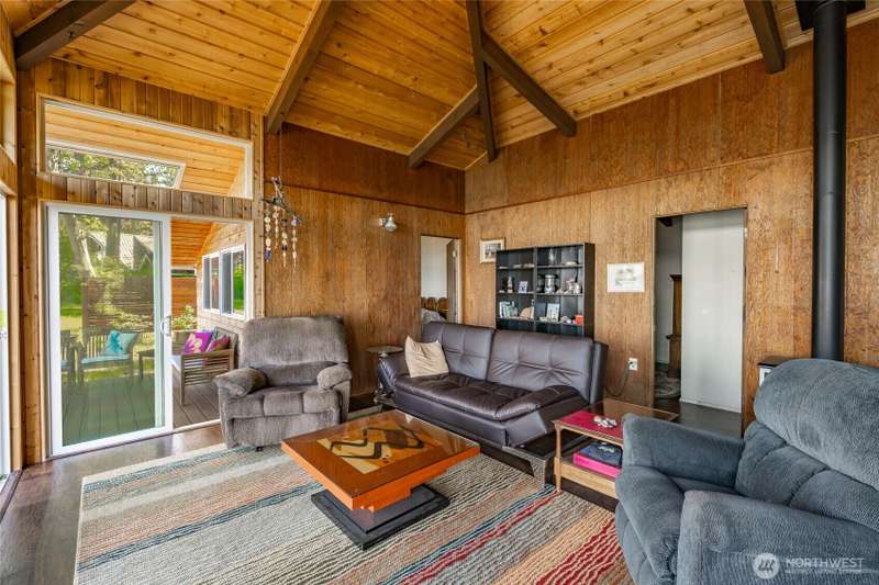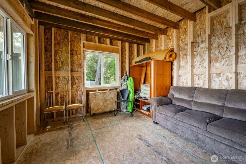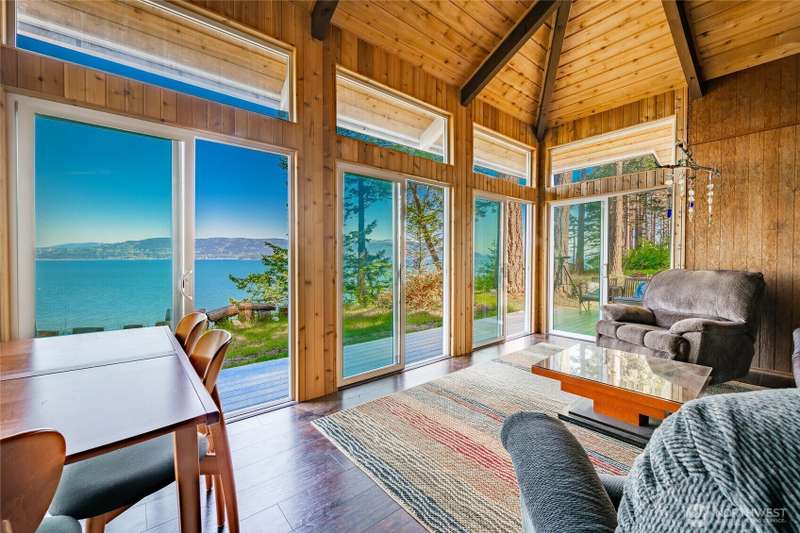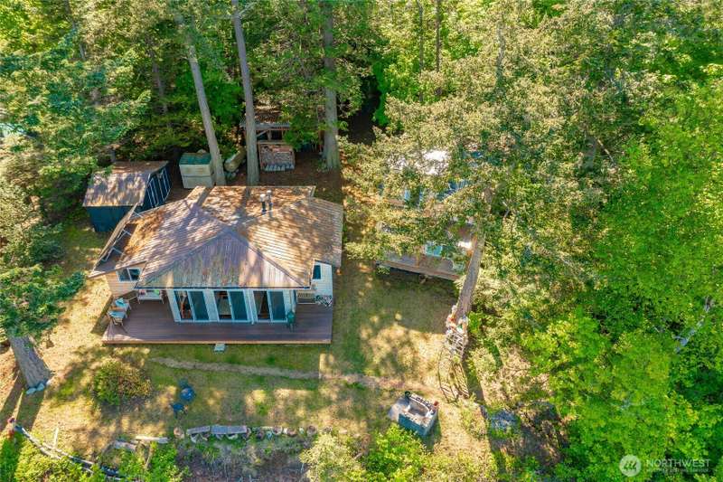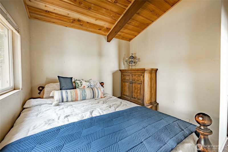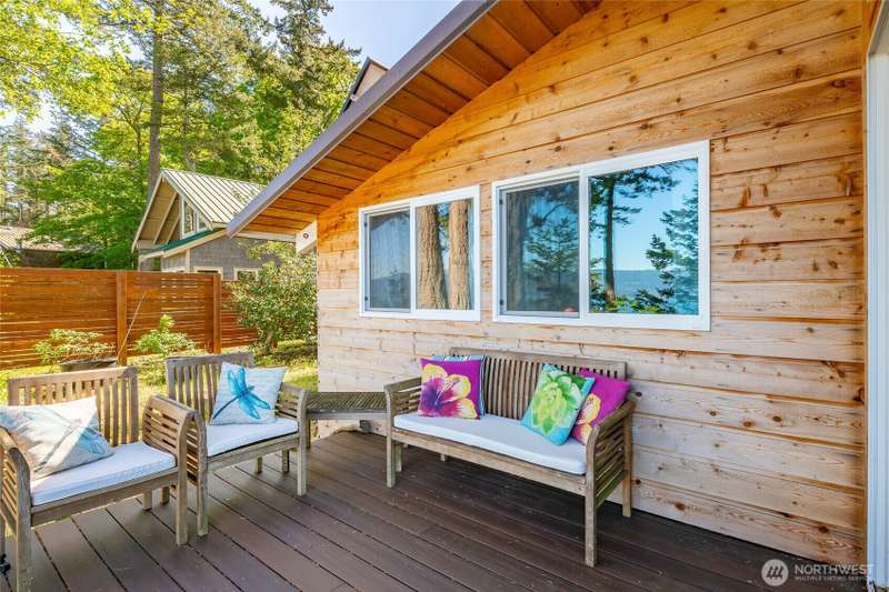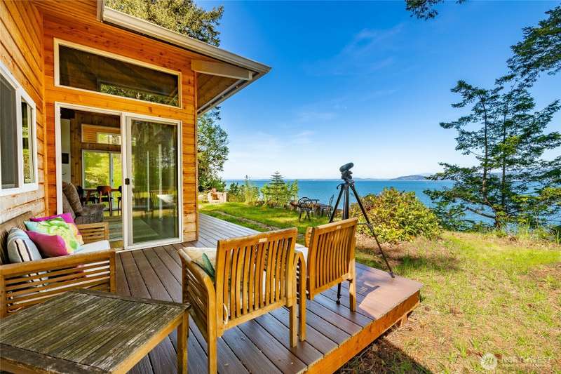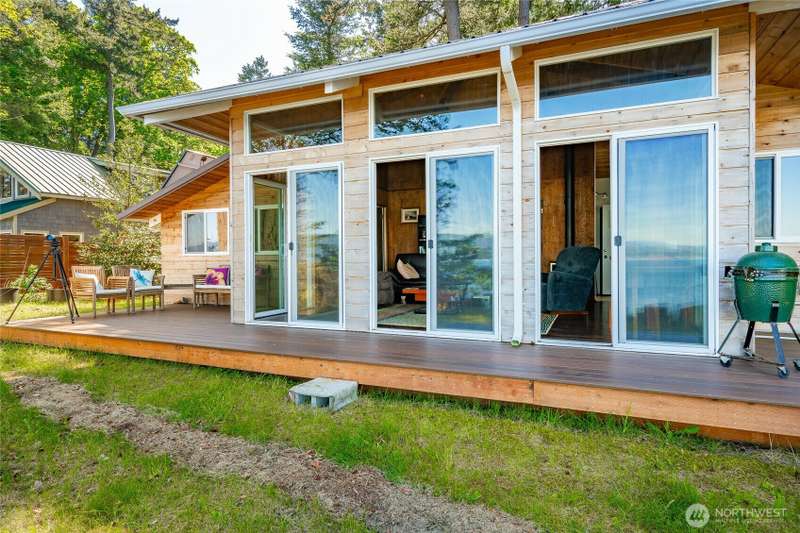 A rare chance to own a piece of Eliza Island paradise! This high-bank waterfront cabin offers stunning eastern views overlooking Bellingham Bay, the Canadian mountains, and the Chuckanut coastline. Featuring 2 bedrooms, vaulted ceilings, natural wood interior paneling, vinyl windows and sliders, and a cozy propane stove for comfort. The cabin is powered by a propane & a solar/battery inverter setup. Bonus: Shop and storage buildings provide ample space for hobbies and projects. Eliza Island maintains its charm with no VRBOs or short-term rentals allowed. Community amenities include a full-time island caretaker, multiple beach access points, a park area, and the private WA93 airstrip, making it a dream destination for outdoor enthusiasts!