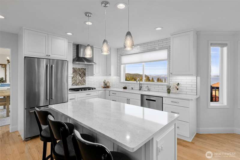 Magnificent Active View From Almost Every Room; Mt.Rainier, Cascade Mtns, Puget Sound, Ferries, Ships, Boaters Heading to Blake Island, Sunsets, Seattle Lights & more- 180 DEGREE! One of the BEST Views in Manchester! Exquisitely Remodeled - All New Kitchen with Coffee Station and Center Island! Painted In & Out. Deck Updated & Stained. New Deck off Primary Bedroom! Beautiful Powder Bath! Owners Bath Updated to Include Jetted Tub, Enjoy the Sitting Room ...Could Be A Home Office too! Gorgeous Landscaping With New Sprinkler System. Just Minutes To The Manchester Dock & Beach. Bus line To Southworth Ferry For Commuters. Height Restrictions To Protect This View. Don't Wait...Get Your Appt To View Now. Lower 600 sq ft; storage space and shop