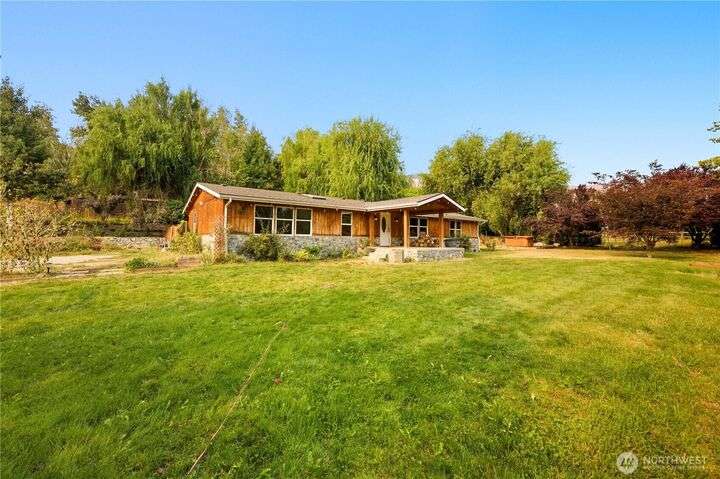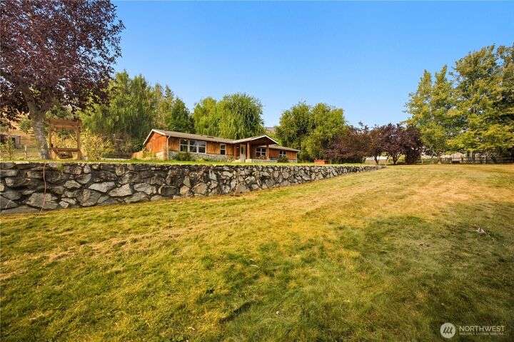 Expansive 2.76 acres of Manson's finest private plot of land--offering mature trees & a diverse landscape providing the utmost seclusion, at 2810 Manson Blvd. The property features a 4-bedroom/2.75-bath, 1,728-square-foot, 1999 custom-manufactured home with a rock accent, situated on a spacious lawn, & complemented by custom rock retaining walls, miscellaneous outbuildings, including a chicken coop, a carport-style versatile shop, and a 1-bedroom/1-bath ADU. Above the ADU, there is an RV hook-up and a dirt road that accesses the terraced landscape, capturing the uplake and 4th of July mountain views. Endless potential, with endless usable space, offering Lake Chelan Reclamation Irrigation, domestic water, septic, & chelan County PUD power.