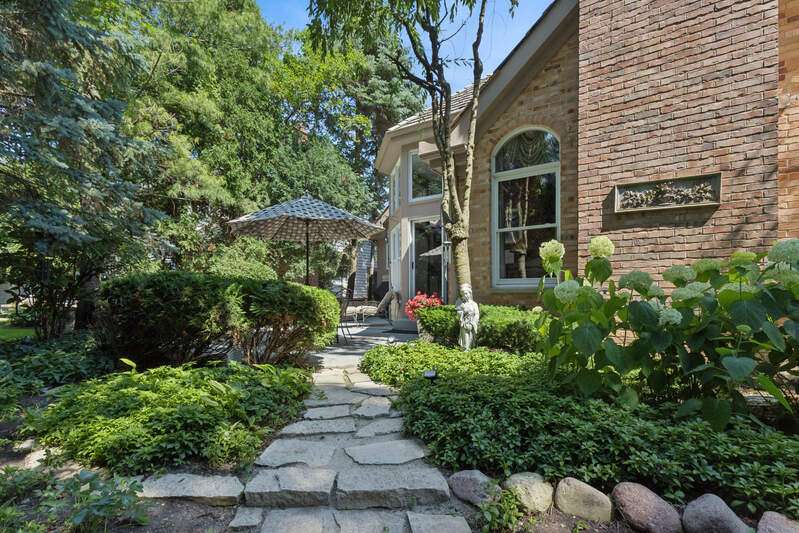 Nestled in the desirable Academy Woods neighborhood of Lake Forest, this charming residence offers a thoughtful layout and serene natural surroundings. Enter into the foyer accented by an open loft above, and views into the gracious living room with cathedral ceilings and oversized windows that bring in great natural light. Flow into the breakfast room framed by an expansive bay window, providing picturesque views of the lush backyard and stone patio. The well-appointed kitchen is perfectly situated between the bright breakfast area and formal dining room, offering both convenience and versatility for everyday living or entertaining. The home boasts three bedrooms conveniently located on the first floor. The spacious primary suite with beautiful tray ceiling, includes an en-suite bath with double sinks, soaking tub, and separate shower. Two additional bedrooms-one currently used as a home office-share a second full bath. A half bath and laundry room complete the first floor. Upstairs, the open loft with lots of closet space overlooks both the foyer and living area and is ideal for use as a family room or creative space. Outdoors, the beautifully landscaped yard offers privacy and tranquility, featuring mature trees, colorful plantings, and a charming garden arch that enhances the backyard's inviting, botanical ambiance.