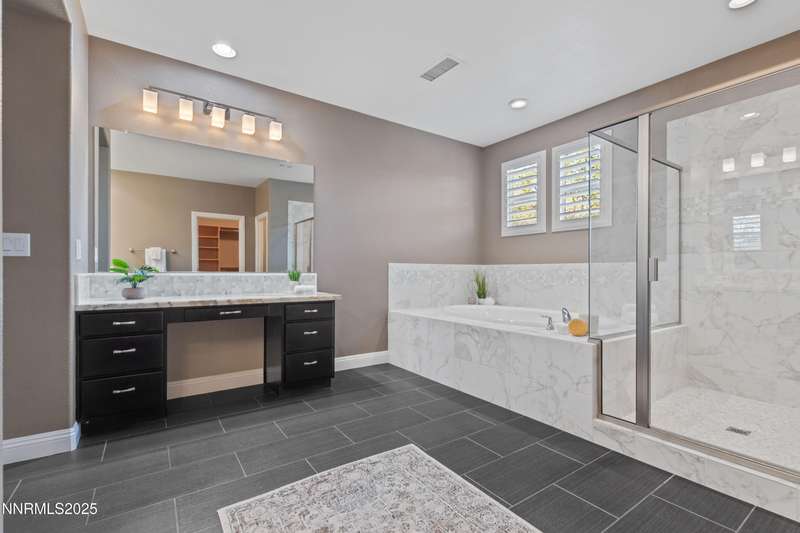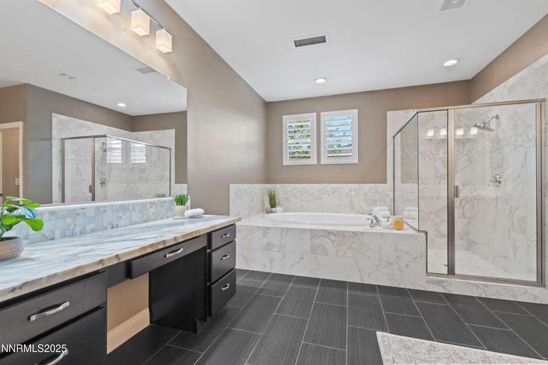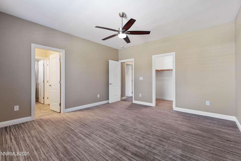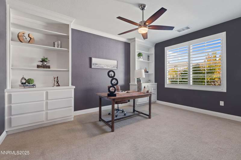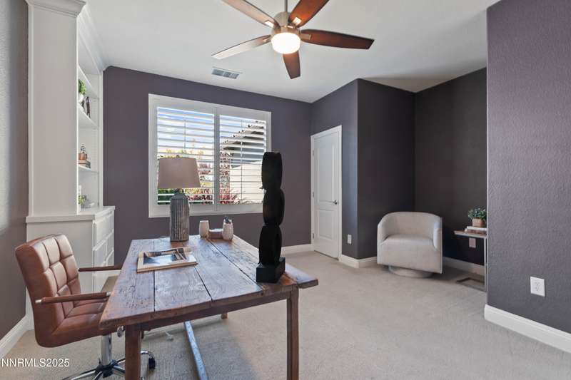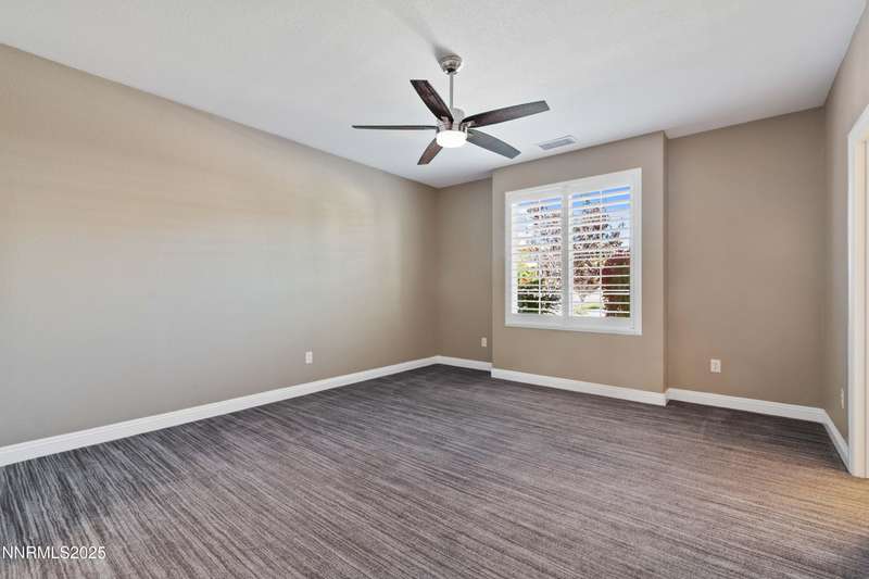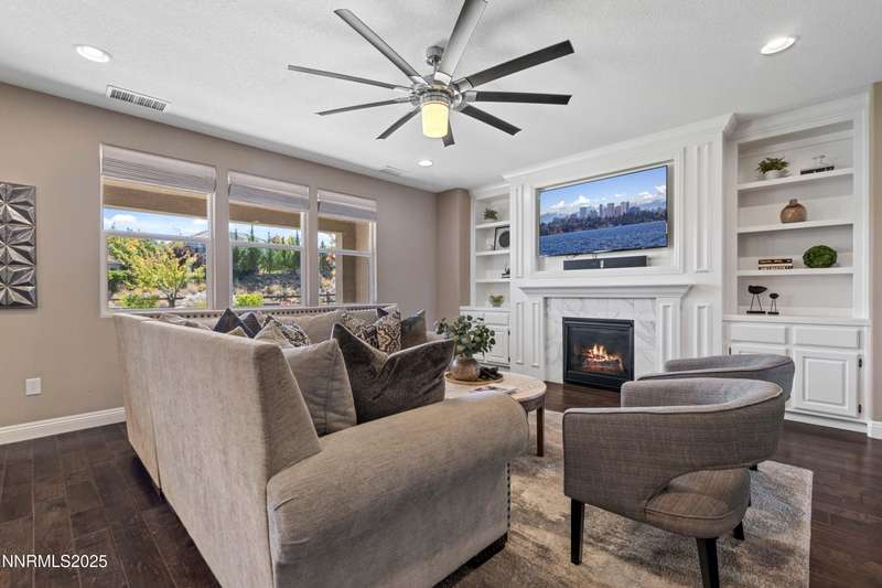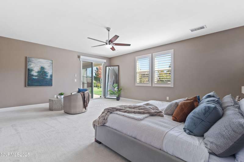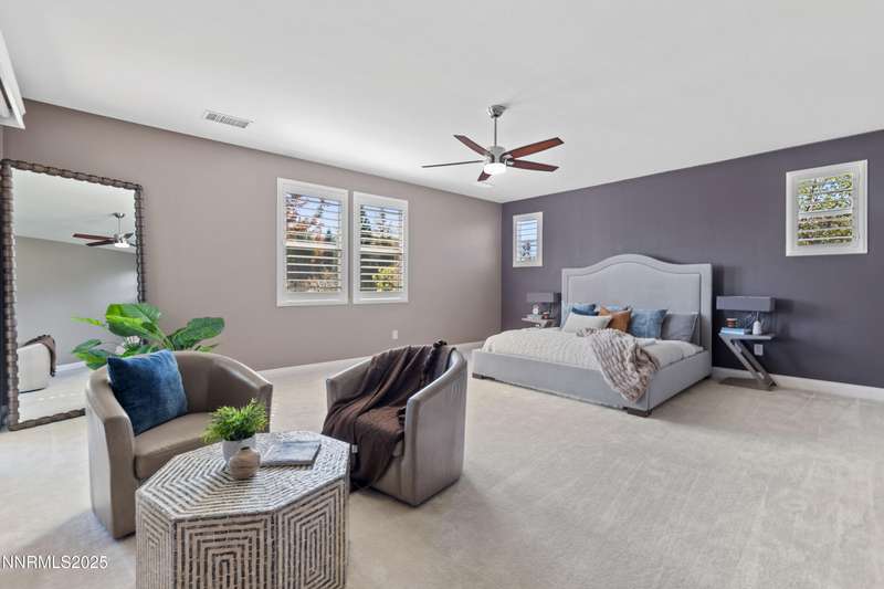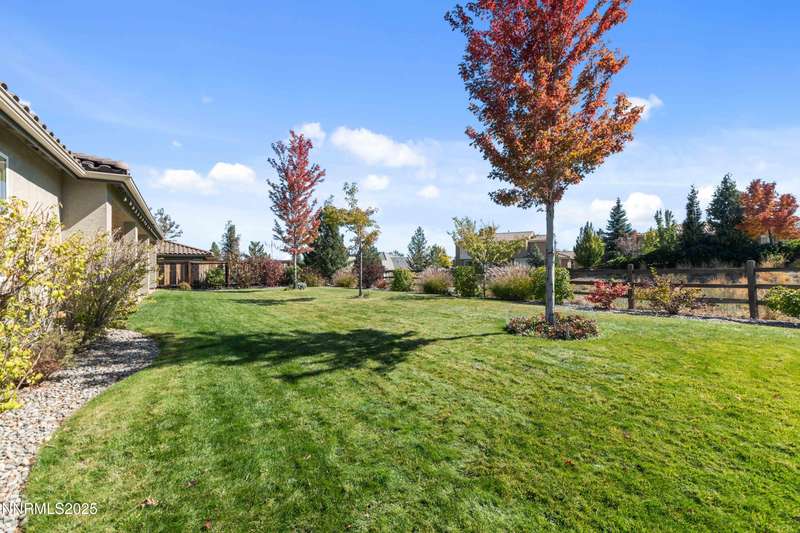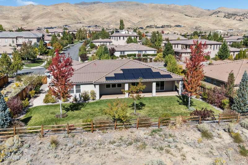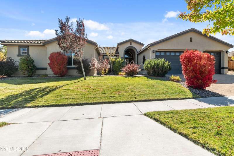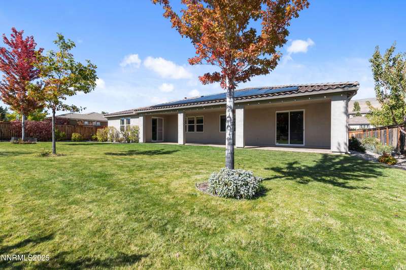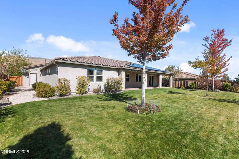 "Open house Saturday 10-18 from 12 to 3 pm" Welcome to your dream home in the prestigious Somersett Golf Community of Reno, Nevada! This stunning, newer residence boasts a desirable single-level open floor plan, perfect for entertaining family and friends. Step inside to discover elegant upgrades that mirror those found in the model home, including exquisite marble countertops and beautiful real hardwood flooring. One of the standout features of this home is the Tesla solar with a Powerwall, ensuring you're never left in the dark and virtually no power bills! The exterior is a gardener's paradise, adorned with an array of fruit trees, vibrant flowers, and aromatic herbs. Enjoy warm evenings on the expansive covered patio, ideal for hosting gatherings or simply relaxing outdoors. Additional highlights include ceiling fans in the main living area and all bedrooms for year-round comfort, an impeccably organized garage with hanging shelves, and soft-close drawers throughout the kitchen. Custom window treatments, including plantation shutters, add a touch of sophistication to every room. This home has been meticulously maintained and is in pristine condition. Don't miss your chance to own a piece of luxury in Somersett—schedule your showing today!