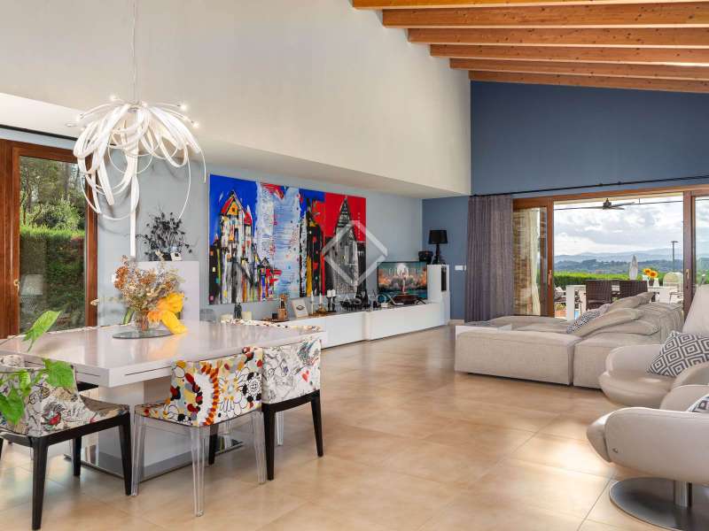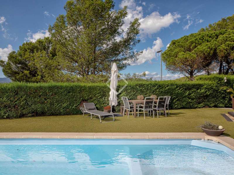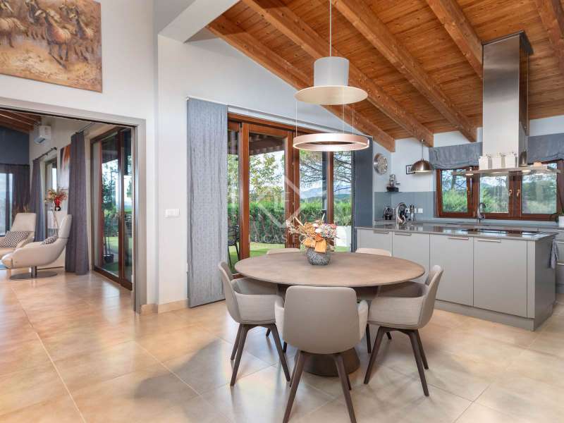Lucas Fox exclusively presents this magnificent villa located in one of the most privileged areas of Girona, in a natural setting with panoramic mountain views, just 15 minutes from the city. This property was built between 2008-2009 and features a contemporary design with high quality finishes. Every detail has been carefully thought out by its current owners. The villa has spacious and bright open spaces inside, with large windows and plenty of natural light. The night area has four bedrooms with private bathroom. On the lower floor , apart from a large closed garage, there is a large multipurpose room ideal as a games area, gym, work studio or TV room. Exterior, there is a private garden and a swimming pool. The property is located in a strategic location, with a quick connection to the centre of Girona, where the best international schools and all the cultural, architectural and gastronomic attractions that the city has to offer are located. This property is located in an unbeatable setting to enjoy a peaceful lifestyle. It is perfect for use as a primary residence or as a holiday home.