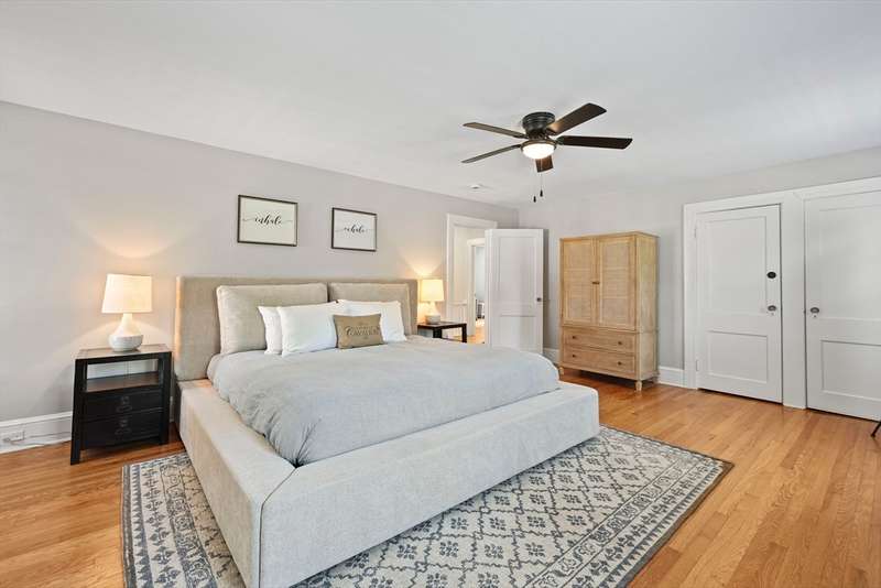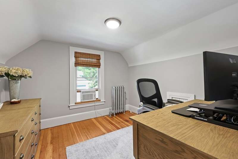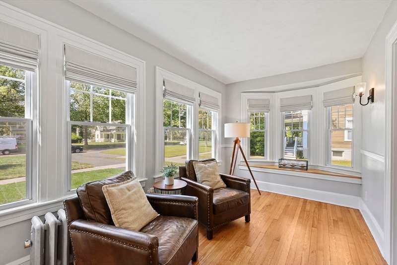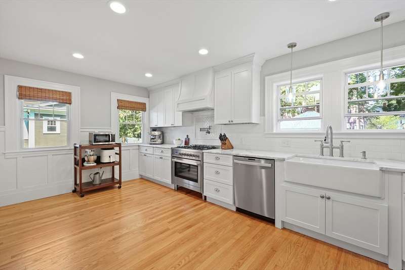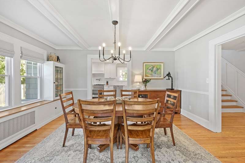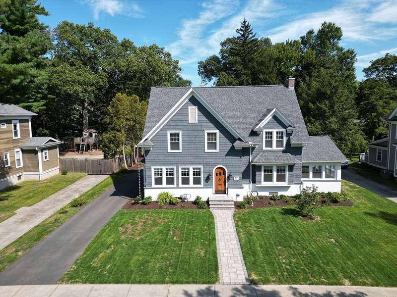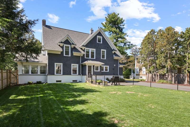 Renovated in the past three years, this colonial boasts pristine & generous interiors over 3 floors filled w/natural light, gleaming hardwood floors, beautiful millwork & neutral palette for effortless flow. Home's curb appeal is elevated by new windows, new roof, new chimneys, new hardscapes & landscape creating a warm & welcoming 1st impression. Spacious living room, anchored by fireplace, sets tone for home s impeccable condition w/charming family room beyond through French doors. Dining room, featuring beamed ceiling, custom built-in glass front cabinets, seamlessly connects to both the renovated light & bright kitchen w/white Shaker style cabinetry, quartzite tops, stainless appliances & cozy den/lounge. Adjacent mudroom has powder room & exterior access to fenced backyard & two car detached garage. Upper level has four bedrooms w/ample closet space & renovated full bath w/tiled tub & shower. Finished third floor has 5th bedroom/home office, full bath plus ample storage in eaves.