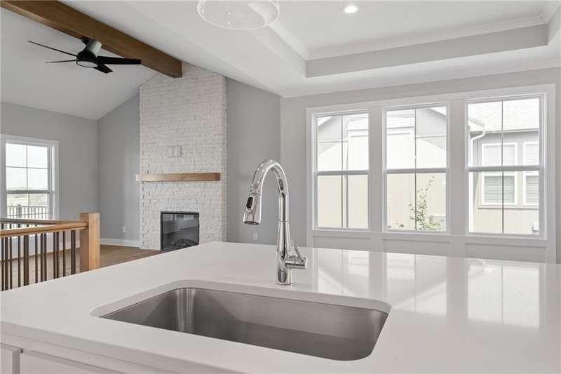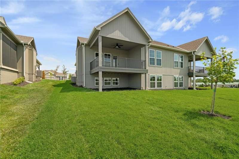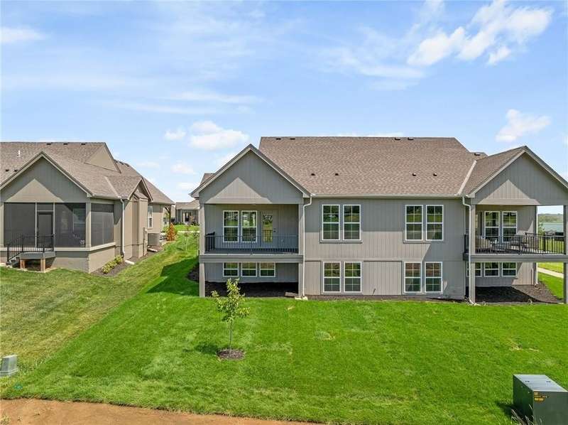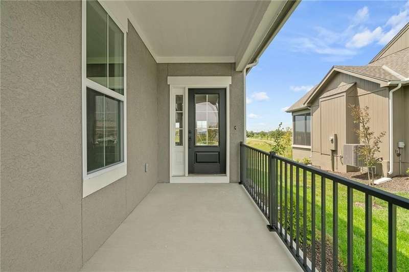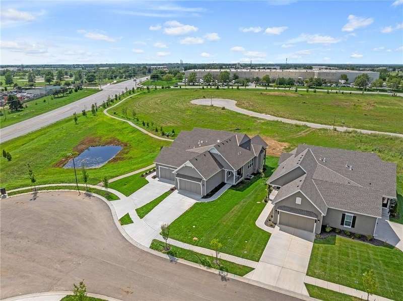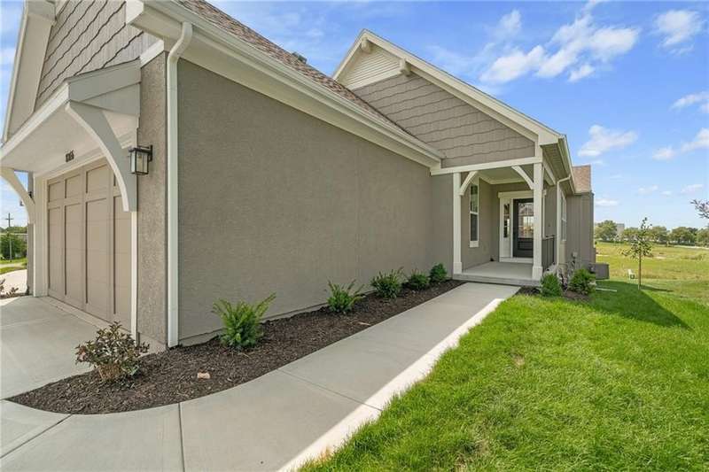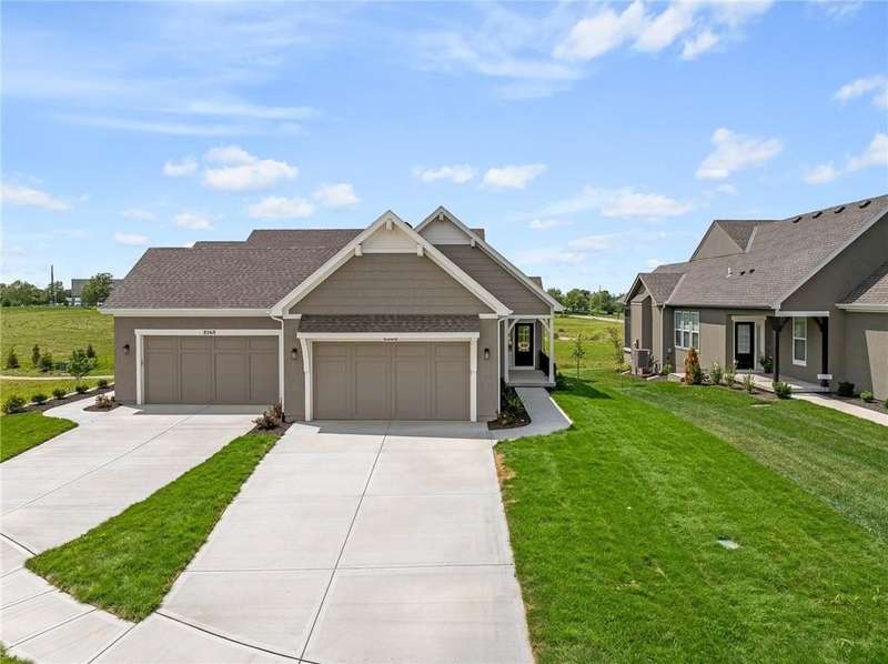 NEW PRICE! MOVE IN READY! Welcome to the Luxury Twin Villas in Lenexa's hottest neighborhood, Bristol Highlands Villas! Introducing the Newport Reverse plan by Lambie Homes on lot 44R, featuring maintenance-provided living. The Newport features 3 bedrooms, 3 bathrooms. Step into this open concept plan impressive Great Room with a vaulted, beamed ceiling, cozy fireplace, windows and door to the covered deck where you can relax or entertain. The heart of this home is the kitchen with soft-close drawers, stainless appliances, gas cooktop, microwave, oven, and dishwasher. Plus, find a pantry, gorgeous quartz countertops, & a sizable island to gather around. Unwind in the primary suite which boasts an impressive, vaulted ceiling, double doors to the bathroom, double vanity, tiled shower, & walk-in closet, conveniently connected to the laundry room. HIGH-END STANDARD FEATURES INCLUDE A 2-CAR GARAGE WITH OPENER & KEYPAD, 96% EFFICIENCY FURNACE, 14 SEER AC, 50-GAL. WATER HEATER, HUMIDIFIER, PRE-PIPING FOR RADON MITIGATION, CROWN MOLDING, TILE SURROUNDS IN ALL SHOWERS, & FULL-YARD IRRIGATION SYSTEM! AND DON'T FORGET ABOUT THE 1-YEAR BUILDER WARRANTY. Just minutes from easy highway access, Lenexa City Center, Lake Lenexa, Shawnee Mission Park, an array of restaurants and award-winning DeSoto schools. Stop by our twin Villa model at 8217 Aurora St. in Lenexa. Open daily 11-5 pm & Sunday 12-5 pm. Don't miss this stunning new home at this incredible price today!