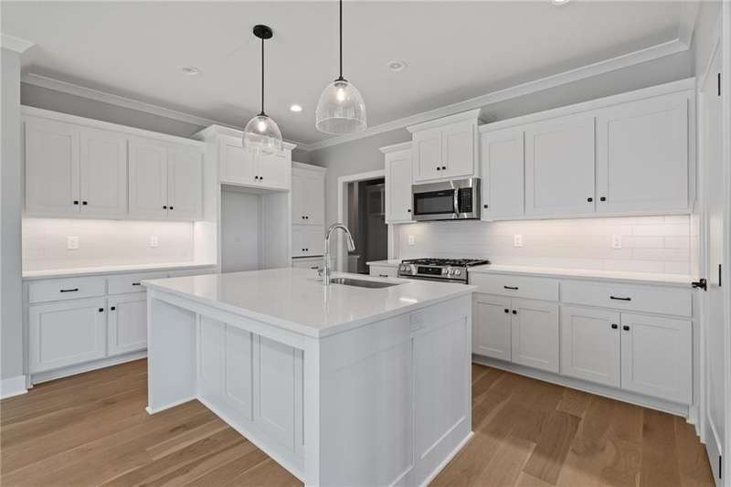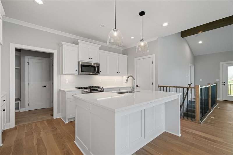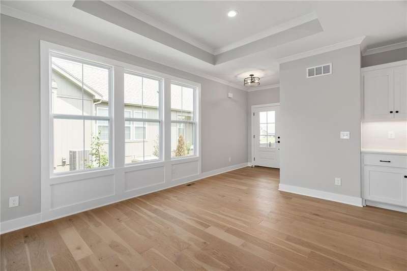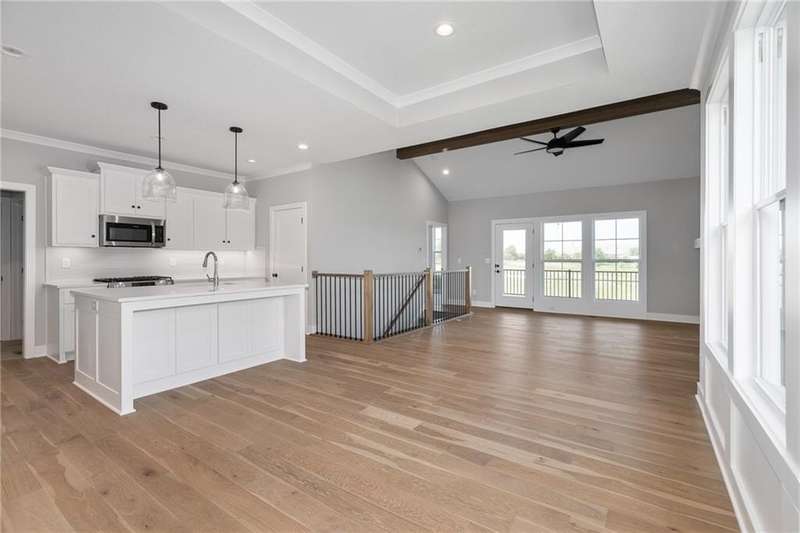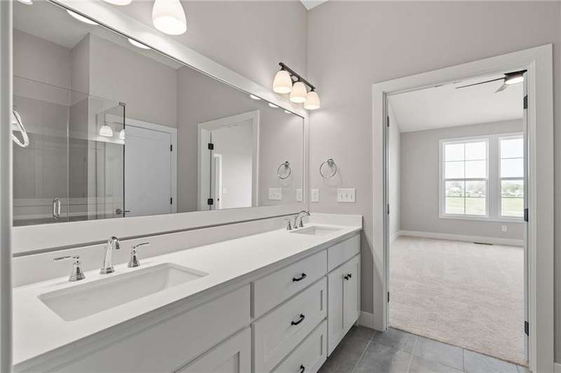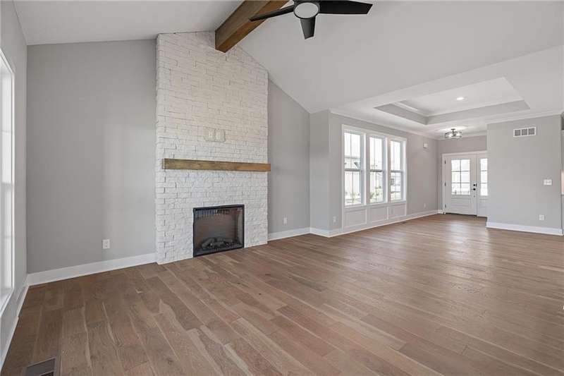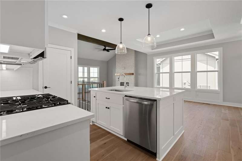 NEW PRICE! MOVE IN READY! Welcome to the Luxury Twin Villas in Lenexa's hottest neighborhood, Bristol Highlands Villas! Introducing the Newport Reverse plan by Lambie Homes on lot 44R, featuring maintenance-provided living. The Newport features 3 bedrooms, 3 bathrooms. Step into this open concept plan impressive Great Room with a vaulted, beamed ceiling, cozy fireplace, windows and door to the covered deck where you can relax or entertain. The heart of this home is the kitchen with soft-close drawers, stainless appliances, gas cooktop, microwave, oven, and dishwasher. Plus, find a pantry, gorgeous quartz countertops, & a sizable island to gather around. Unwind in the primary suite which boasts an impressive, vaulted ceiling, double doors to the bathroom, double vanity, tiled shower, & walk-in closet, conveniently connected to the laundry room. HIGH-END STANDARD FEATURES INCLUDE A 2-CAR GARAGE WITH OPENER & KEYPAD, 96% EFFICIENCY FURNACE, 14 SEER AC, 50-GAL. WATER HEATER, HUMIDIFIER, PRE-PIPING FOR RADON MITIGATION, CROWN MOLDING, TILE SURROUNDS IN ALL SHOWERS, & FULL-YARD IRRIGATION SYSTEM! AND DON'T FORGET ABOUT THE 1-YEAR BUILDER WARRANTY. Just minutes from easy highway access, Lenexa City Center, Lake Lenexa, Shawnee Mission Park, an array of restaurants and award-winning DeSoto schools. Stop by our twin Villa model at 8217 Aurora St. in Lenexa. Open daily 11-5 pm & Sunday 12-5 pm. Don't miss this stunning new home at this incredible price today!