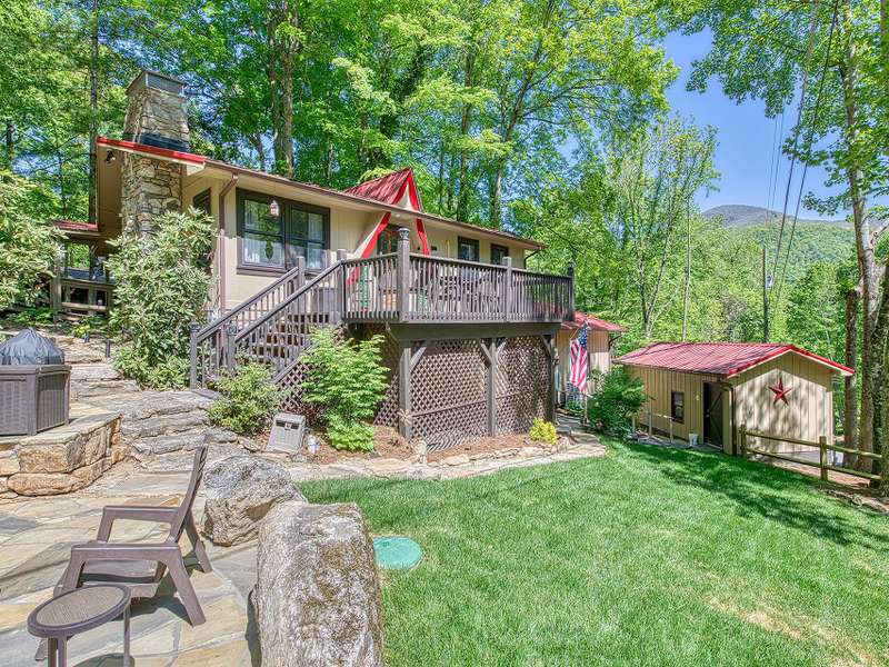 Offered fully furnished and move-in ready, this charming mountain home in the desirable Wild Acres community features year-round mountain views, a 2022 hot tub, high-speed Spectrum internet, a custom stone firepit, detached garage, and paved, easy access. The flexible layout includes two separate living quarters with a lock-off option, ideal for multigenerational living or generating rental income. Just 2 minutes from downtown Maggie Valley and approximately 10 minutes to Cataloochee Ski Area, the Blue Ridge Parkway, and Waynesville?plus only 30 minutes to Asheville and the Biltmore Estate. Currently operating as a successful vacation rental.