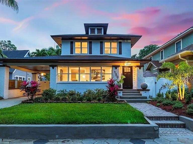 One or more photo(s) has been virtually staged. Beautiful historic yet modern home in a great location: NE St Pete. Luxury, charm, location and amenities with plenty of space. This historic 1925 home has two living areas: a 2229 sq ft two story main home with 3 bedrooms and 2.5 bathrooms, and a second story 378 sq ft studio/ one bath above the detached two car garage. Everything is remodeled and modern, yet still true to the home's history. Featuring wood flooring, custom kitchen with a gas range and pantry, and two living areas as well as a formal dining room on the first floor. Large enclosed front porch with unique tile. Private backyard with sport grass and inground pool. Long driveway with carport and access to the back yard. Garage has access from the alley. Beautiful landscaping at this home and throughout the neighborhood. High and dry, this home is in a flood zone X, was not flooded in 2024, yet still close to several lakes, Coffee Pot Blvd and waterfront Shore Drive. There are MANY luxury homes in NE St Petersburg. What makes this one special? IT IS DRY! Enjoy all of the St Petersburg amenities. Both spaces are unfurnished, any furniture featured in photos is for staging purposes only. Some photos may be virtually staged.