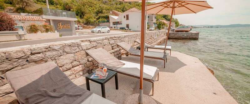 This authentic Mediterranean-style villa is 125m2, with a land area of 123m2. There is an outdoor swimming pool and a private concrete beach with boat mooring. The small yard is equipped with a complete outdoor kitchen, barbecue, and lounge area.