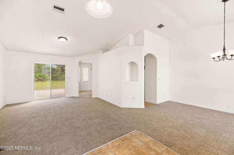 Seller will add new roof. At the end of a quiet cul-de-sac in desirable Seminole Woods, this contemporary SeaGate home offers privacy, space, and a beautifully wooded backdrop. The thoughtfully designed split floor plan places the spacious primary suite-with high ceilings, a walk-in closet, and a double-sink vanity-on one side, while two additional bedrooms and a full bath sit comfortably on the other. Enjoy natural light throughout the home, with large windows framing serene views of the private, wooded area behind the property. The family room features sliding glass doors leading to a generous patio-perfect for relaxing or entertaining. The formal dining room is set apart from the kitchen, which also includes a breakfast bar for casual meals. Additional features include an inside laundry/utility room with washer and dryer hookups, and a unique backyard setting that flanks a peaceful canal-offering potential for a personalized path to nature.
