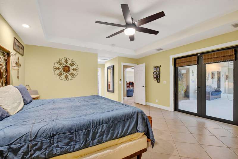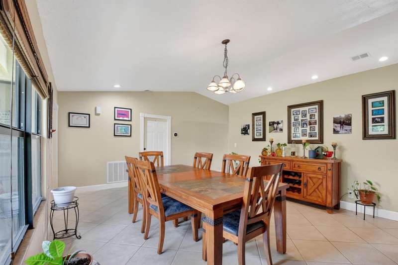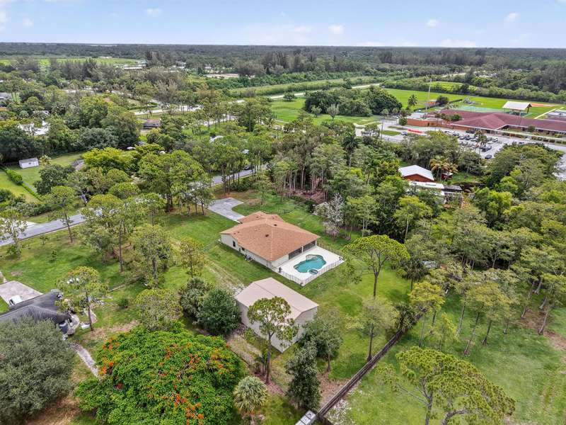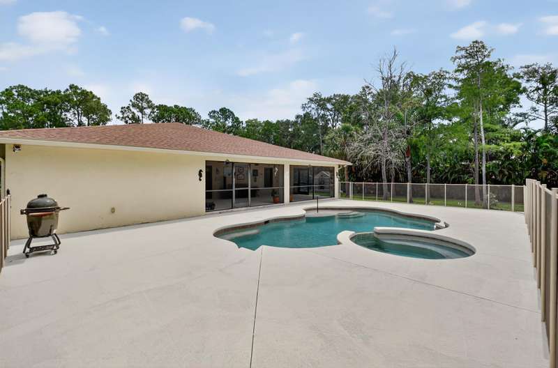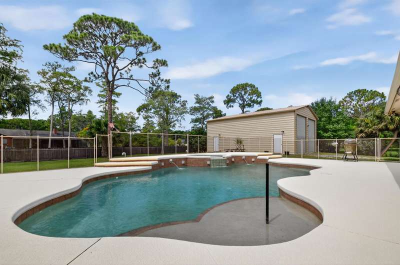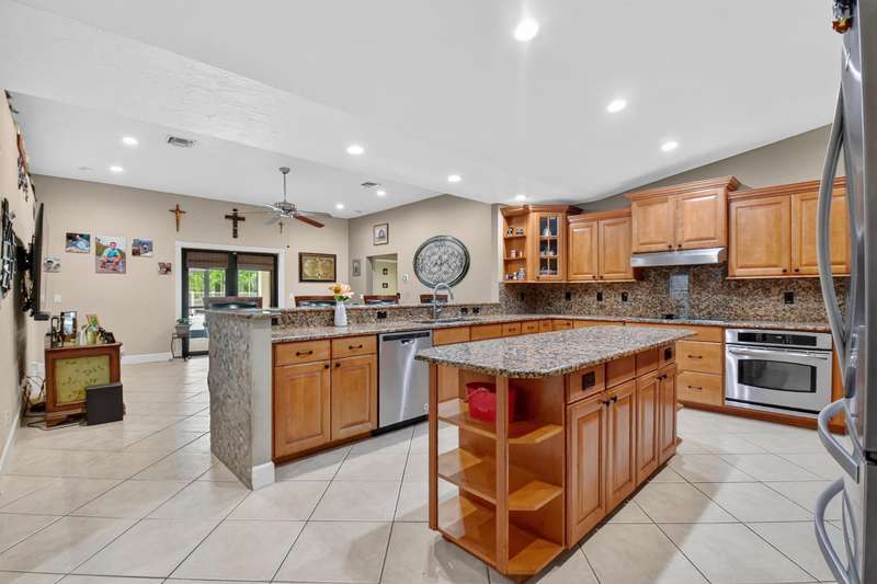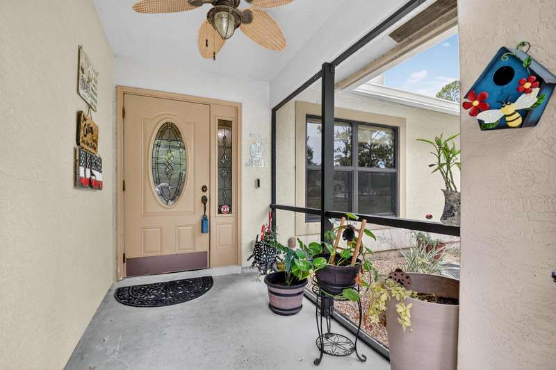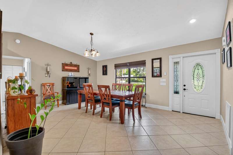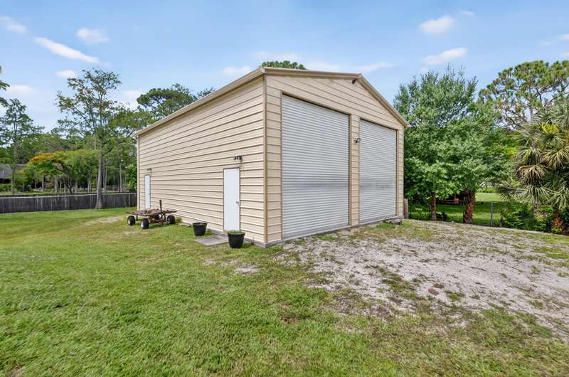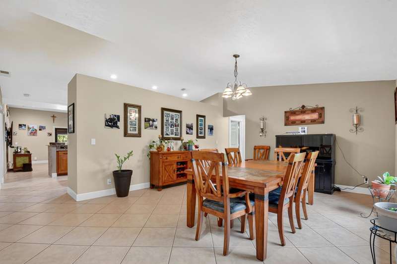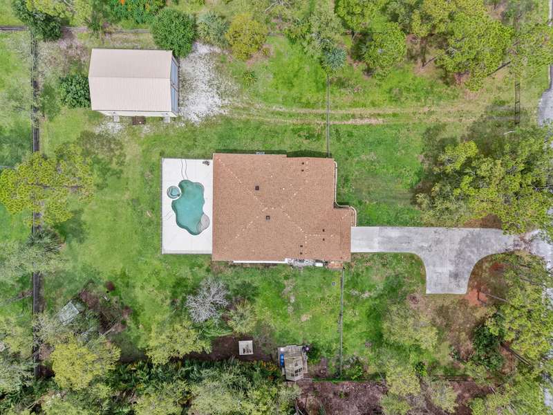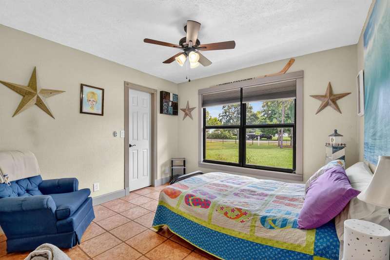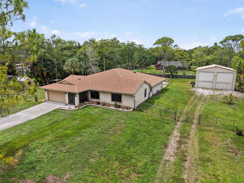 Beautiful family retreat in a tranquil country setting. This property sets on 1.41 acres where modern amenities meet country charm. This 5 BR residence features 2 master suites, 4 full baths + a versatile flex room.The expansive screened-in patio offers serene views of the lg property while the sparkling salt water pool/Jacuzzi invites you to relax & unwind. Inside,a gourmet kitchen boasts granite countertops, double ovens, a warming drawer, & a large island perfect for entertaining.Other highlights include an innovative safe room w/reinforced concrete walls & hurricane door, whole house impact windows and generator & solar roof fans for optimal attic cooling. A massive (30x40x16) 2ndary bldg, fully air-conditioned & insulated is perfect for housing boats or RVs. +Greenhouse & chickencoop