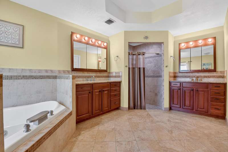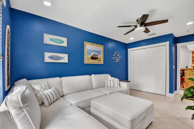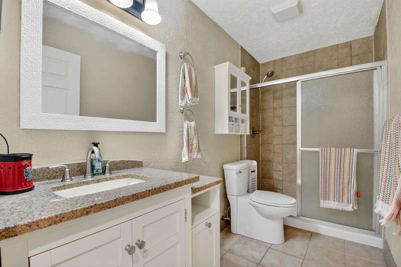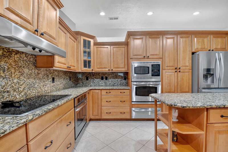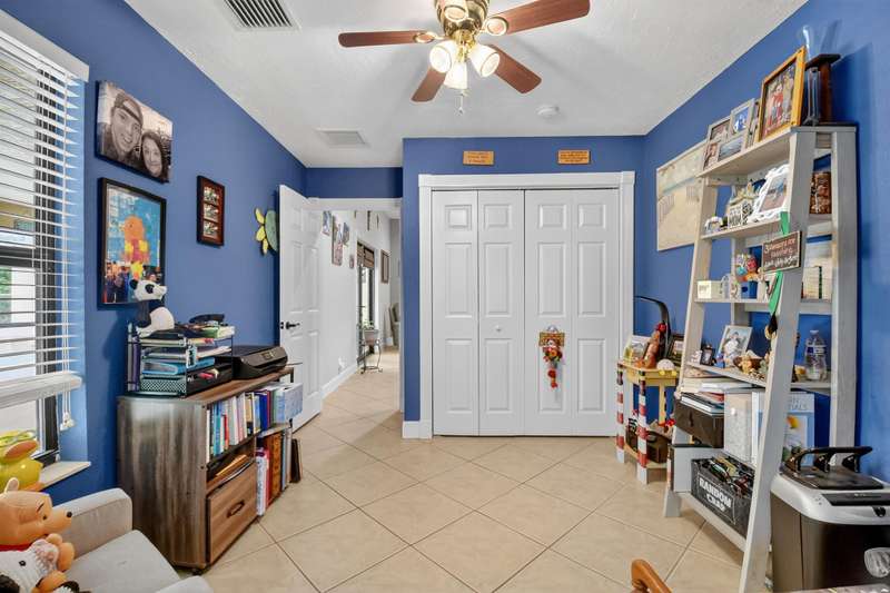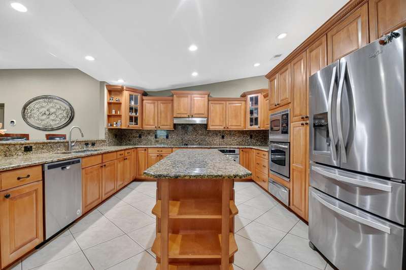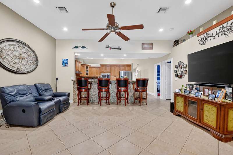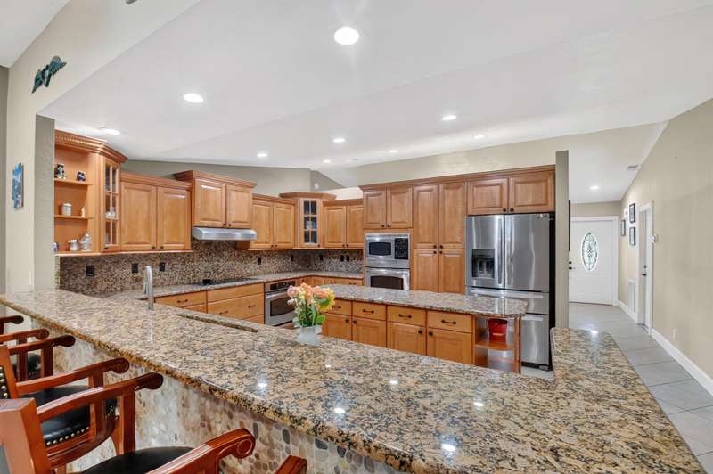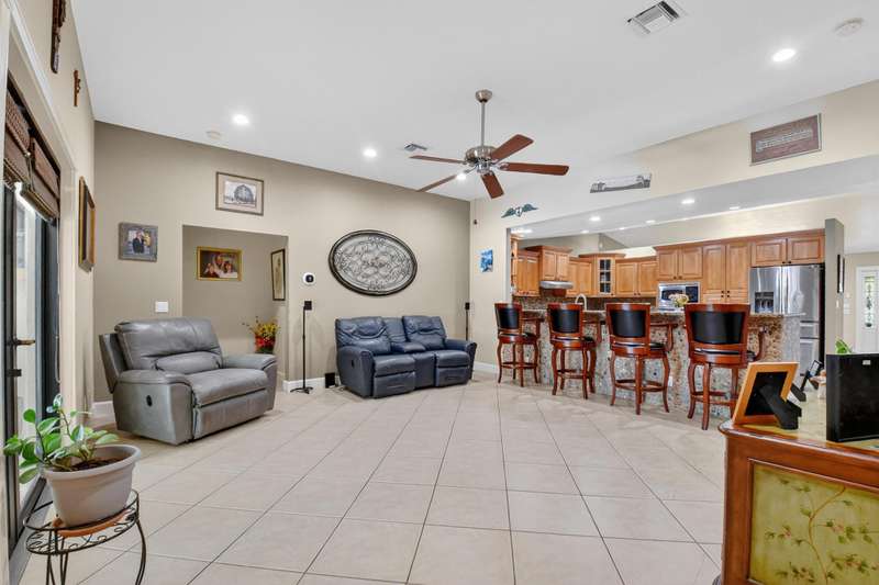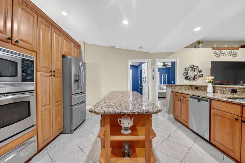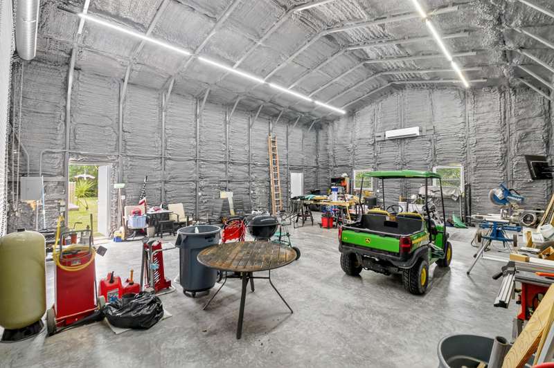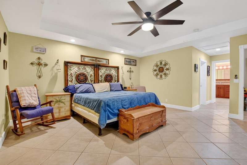 Beautiful family retreat in a tranquil country setting. This property sets on 1.41 acres where modern amenities meet country charm. This 5 BR residence features 2 master suites, 4 full baths + a versatile flex room.The expansive screened-in patio offers serene views of the lg property while the sparkling salt water pool/Jacuzzi invites you to relax & unwind. Inside,a gourmet kitchen boasts granite countertops, double ovens, a warming drawer, & a large island perfect for entertaining.Other highlights include an innovative safe room w/reinforced concrete walls & hurricane door, whole house impact windows and generator & solar roof fans for optimal attic cooling. A massive (30x40x16) 2ndary bldg, fully air-conditioned & insulated is perfect for housing boats or RVs. +Greenhouse & chickencoop