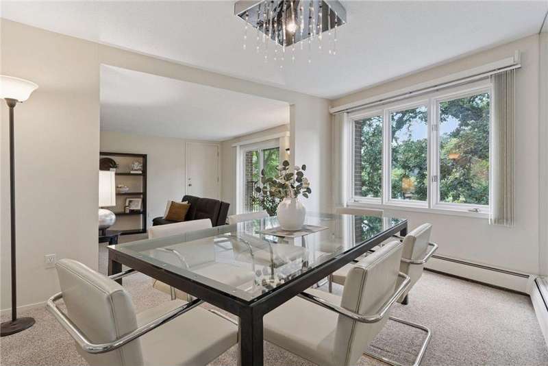 Welcome to effortless living in the desirable Seven Oaks condominium community in Minnetonka! MOVE RIGHT IN - SELLERS WILL INCLUDE FURNITURE WITH ACCEPTABLE PURCHASE - INCLUDING THE ROOM AND BOARD DINING ROOM SET!!! This bright, airy, and meticulously maintained home offers a rare combination of comfort, convenience, and value, all in an unbeatable location. Set on the 2nd floor with scenic pool views, this spacious unit boasts an open-concept layout designed for both everyday living and entertaining. Expansive windows flood the home with natural light, while the plush neutral carpet and soft wall tones create a warm, calming atmosphere. The thoughtfully updated dining room lighting adds a modern touch to the overall timeless design. Step outside onto your private, covered balcony, accessible from both the living room and the primary bedroom. It's an ideal spot to sip your morning coffee, unwind with a book, or simply enjoy the peaceful surroundings. Inside, you'll find oversized rooms and abundant storage space, a rare and welcome bonus in condo living. With 1,456 finished square feet, this home includes 2 spacious bedrooms, 2 bathrooms, and 2 dedicated garage parking spots. The monthly association fee covers nearly everything: - Heat - Water and sewer - Sanitation - High-speed internet - Cable TV - Use of laundry machines (free on every floor!) - Building maintenance and amenities Your only separate utility is electricity, which averages around $40 per month, making budgeting a breeze. Beyond the unit, Seven Oaks delivers an exceptional lifestyle with resort-style amenities, including: • A sparkling in-ground swimming pool • Sauna and fitness center • An expansive community room with kitchen, bar, pool table, lounge space, and ample seating, ideal for hosting gatherings. Recent updates to the building include a new roof in 2023 and a new boiler heating system in 2022, providing added peace of mind for years to come. Tucked into a tranquil neighborhood near a golf course, Seven Oaks is close to parks, walking trails, dining, shopping, and major highways, offering quick access to everything the west metro has to offer. Located in the Hopkins School District, this address provides access to quality education and everyday convenience. Whether you're downsizing, purchasing your first home, or seeking a low-maintenance lifestyle, this unit offers a rare blend of space, style, and simplicity, all in a well-maintained community known for its comfort and care. Don't miss your chance to live in one of Minnetonka's most sought-after condo communities. Welcome home to Seven Oaks, where comfort meets convenience in the heart of the west metro!