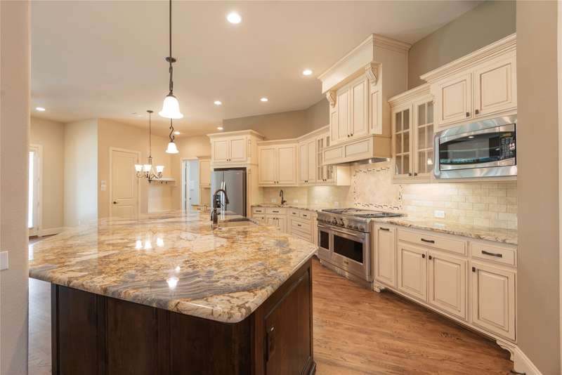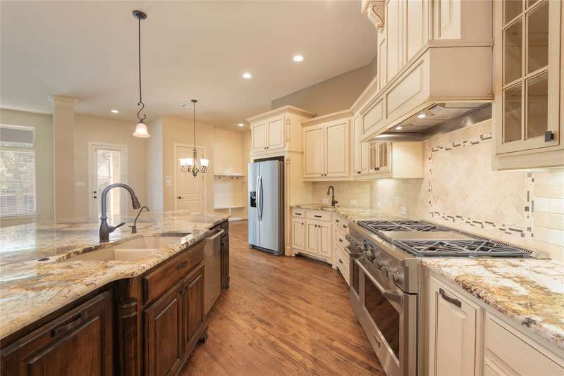 Rare Find! 1 Story David Weekley Custom in sought after Hamilton Hills in West Allen! Gorgeous drive up with stone and cedar elevation. Custom features include extensive nail down hardwoods, solid core doors and high end fixtures throughout. This one owner 4 bedroom 4 full bath home checks all the boxes and shows like a model. Custom front door opens to an elegant formal dining room and formal living room or study. Spacious family room has wood floors and custom cast stone fireplace. Amazing kitchen has huge island and high end granite counters, GE Monogram 6 burner gas cooktop with griddle and double ovens, Stainless steel appliances and custom cabinetry. Primary Suite has a spa like bath with separate vanities, jetted tub, step down European shower and large closet with built-ins. 3 additional large secondary bedrooms, 2 with ensuite baths and 1 with full bath access. Private backyard with extended covered patio. Oversized 3 car garage has epoxy flooring. Nestled in the prettiest part of Allen and close to Allen's best shopping & dining! Pride of ownership shows in this impressive 1 story custom!
