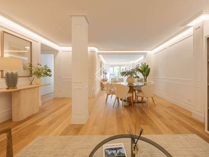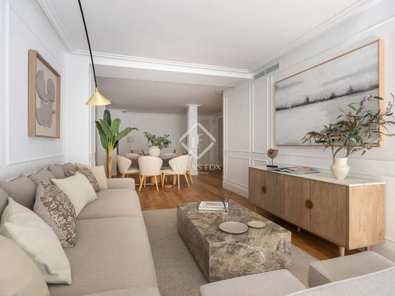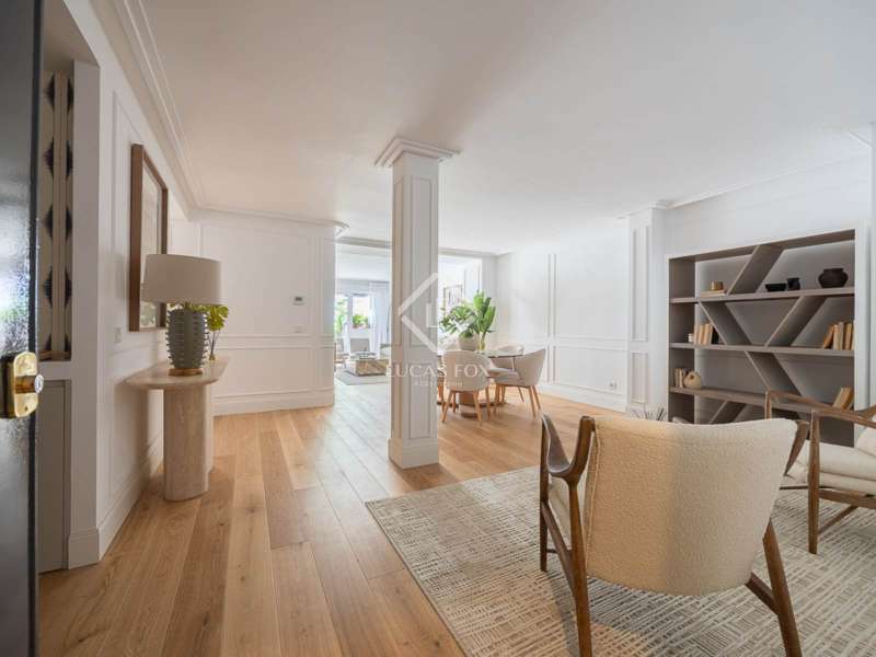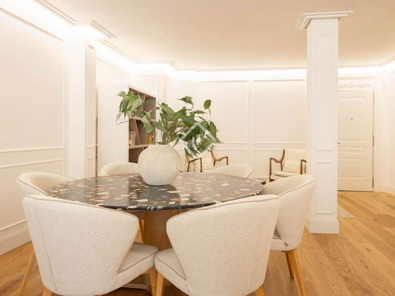 In the prestigious Recoletos area, in the coveted Salamanca neighbourhood , lies this elegant 135 m² property , located in a prestigious building just a few meters from the iconic Retiro Park. The property has been completely renovated with high-quality materials and is being sold fully furnished, ready to move into with every comfort. The property offers a balanced and functional layout , with two spacious bedrooms, both with en suite bathroom , and a guest toilet that provides extra comfort for everyday life or when entertaining. The spacious and bright living room is designed to offer a relaxing and entertaining space, with a warm and contemporary decor that adds personality without sacrificing sobriety. The kitchen, equipped with high-end appliances , blends seamlessly into the apartment's contemporary style, designed for those who value both design and practicality. As an added value, the property includes a parking space on the same building, a rare privilege in this area, and especially valued in Recoletos, where access to private parking makes a clear difference. The location is unbeatable: next to the Retiro Park, surrounded by historic buildings, luxury boutiques , excellent restaurants, and perfectly connected by public transport. A setting that combines the classic charm of Madrid with the dynamism of one of its most vibrant and exclusive areas . A property that combines location, quality, and lifestyle. Ideal both as a primary residence and as an investment in one of the most desirable areas of the capital.