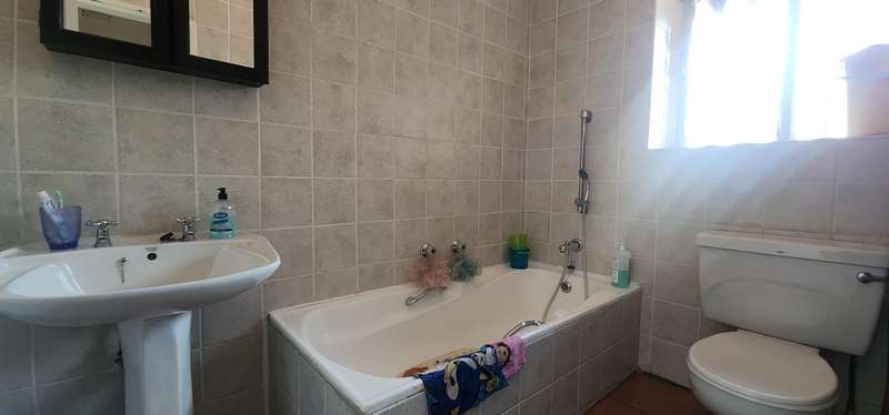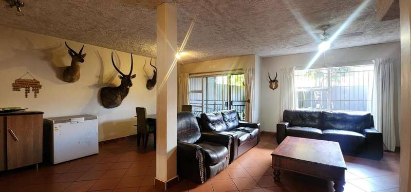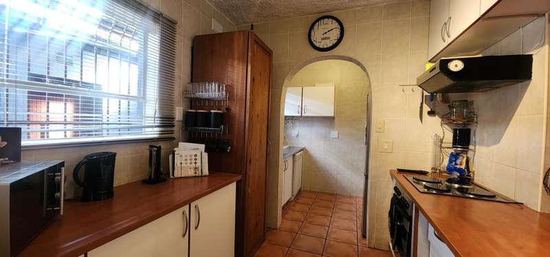 This flat is perfect for small families and individuals who love quite lifestyle. It consists of 3 bedrooms each with built-in cupboards for convenient storage Two bathrooms, of which one is a full bathroom and the other with a toilet, shower and washbasin, for comfort and relaxing. Open plan lounge and dining areas provide ample space for relaxation and quality time. The kitchen is fitted with cupboards and tiled walls. Single garage with wooden door and carport for secure parking. Small enclosed garden, with a pool in the complex. Do not miss out on this opportunity