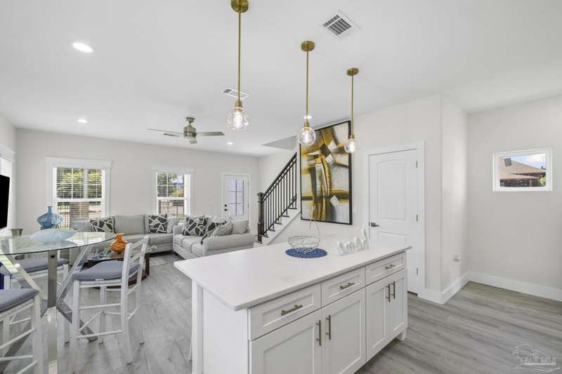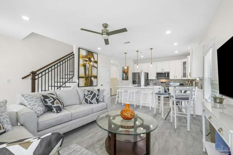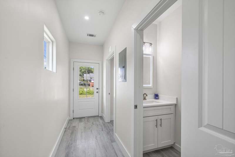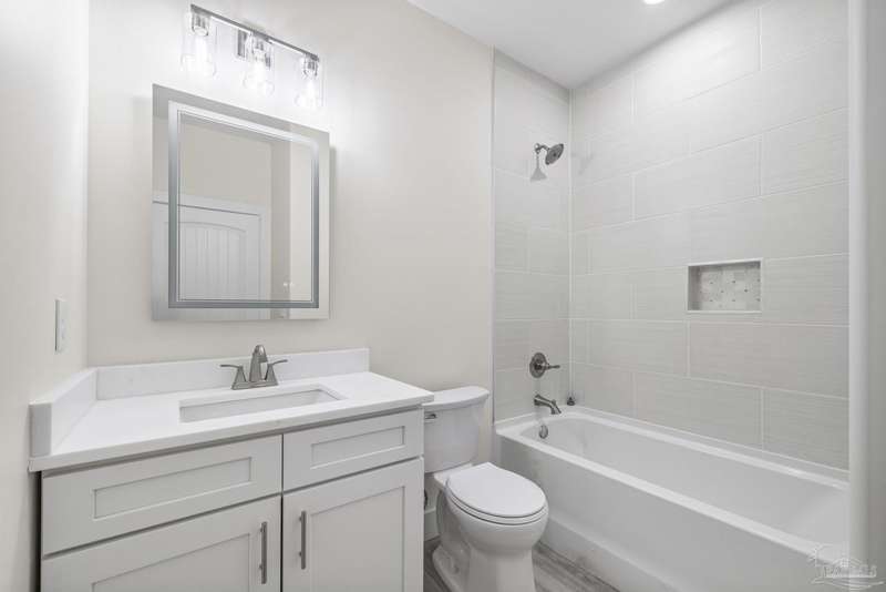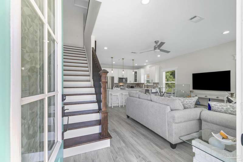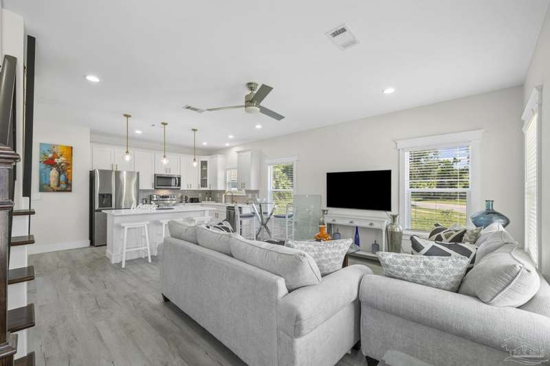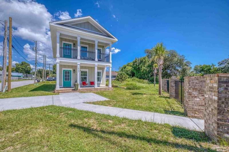 Discover modern luxury and refined design in this stunning, completed custom home featuring 3 bedrooms and 3.5 bathrooms. Ask me about the incentives the seller is offering! Each bedroom designed as a private suite with its own bathroom. From the moment you step inside, you'll notice the high ceilings, ambient lighting, and upscale finishes throughout, including granite countertops, tile backsplash, and sleek stainless steel appliances. The open concept layout flows beautifully, LED lit mirrors, and elegant touches that enhance every space. Upstairs, a versatile bonus room awaits perfect as a home office, second living room, or entertainment space. Step onto the spacious balcony to enjoy vibrant neighborhood views, ideal for relaxation or entertaining guests. Located within minuets of the Oar House and Pensacola Yacht Club, and downtown. This home combines style, convenience, and an unbeatable location