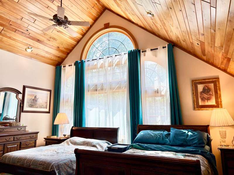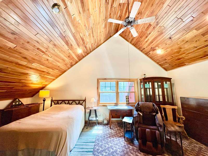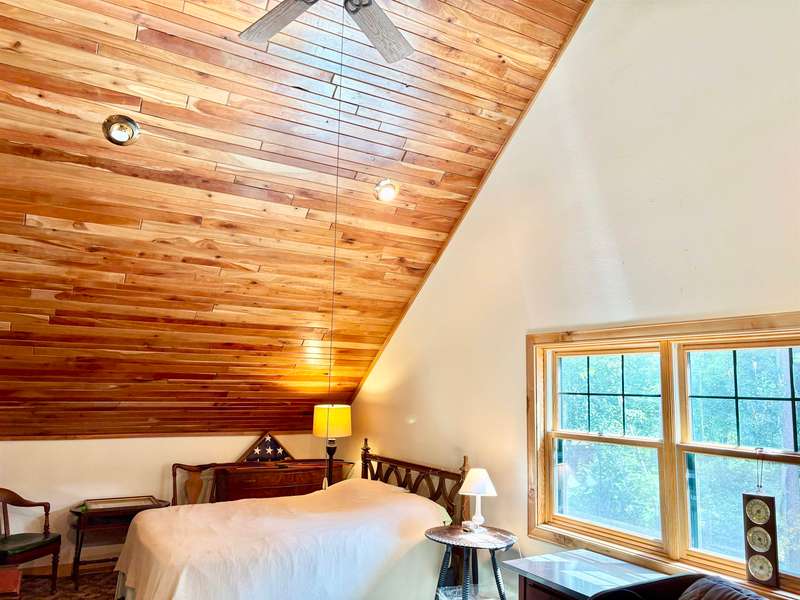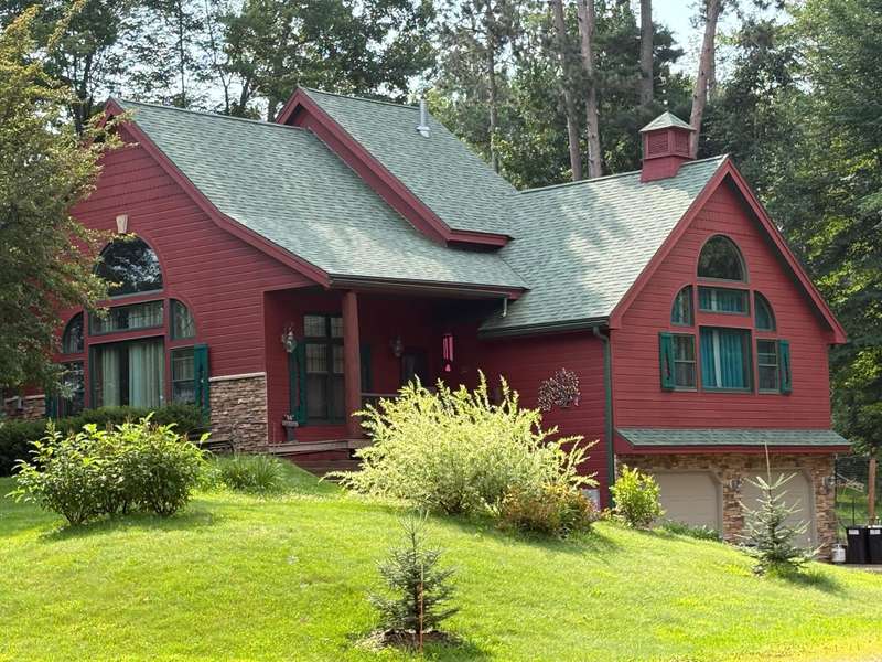 This 2 bedroom 2 1/2 bath Redwood sided house with stone accent enjoys beautiful landscaping, perennial flowering gardens, crab apple trees, flowing bushes, backyard patio, & fenced in back yard. The great room features a gas fireplace, cherry wood cathedral ceilings 26 ft high, ceiling fans, large windows with view of Lake Nokomis, & log staircase leading to the loft bedroom. The master bedroom suite is spacious with a gas fireplace, walk in closet, huge bathroom with double sinks, & shower. The kitchen has maple cabinets, pantry, & laundry room / full bathroom close by. The lower level includes a half bath, & den/guest room. There is an attached garage insulated and dry-walled. The 30x50 steel shed will give you plenty of space for all your vehicles and toys.