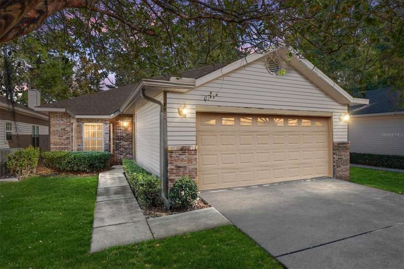 One or more photo(s) has been virtually staged. Move-in Ready! One of NW Gainesville’s most desirable communities! This 2-bedroom, 2-full bath single-family home in Blues Creek is filled with natural light, character, and a comfortable layout that feels instantly welcoming. New HVAC (2025), new water heater (2025), newer roof (Dec 2022). No carpet! Luxury vinyl plank flooring in bedrooms (2025). Ceramic tile throughout rest of the home. Fresh interior paint. 2-car garage with a utility sink. Enjoy an open concept, easy-flowing living area, kitchen and dining area. The primary suite is highlighted by a classic bay window with a cozy window seat, a large walk-in closet with shelving, and an ensuite with double sinks and tub/shower combo. Generously sized second bedroom and second bathroom with tub/shower combo. This side of the home is separated from the primary suite by a hallway for extra privacy. Inside laundry closet with washer and dryer. Enclosed, screened back porch with a quiet backyard. Enjoy a truly low-maintenance lifestyle where the HOA fees cover all lawn care and exterior maintenance, including the roof. Blues Creek’s fantastic amenities include a community pool, tennis courts, and walking trails — all surrounded by peaceful, tree-lined streets. Great Location: Just minutes to Publix, Fresh Market, Starbucks, and popular restaurants along NW 43rd Street and Millhopper Road. Home is a quick drive to the University of Florida, Shands/UF Health, Gainesville airport, I-75, and downtown Gainesville — making this home ideal for both convenience and lifestyle. Perfect for first-time buyers, rightsizers, or anyone looking for a home with charm, comfort, and a premier Gainesville address.