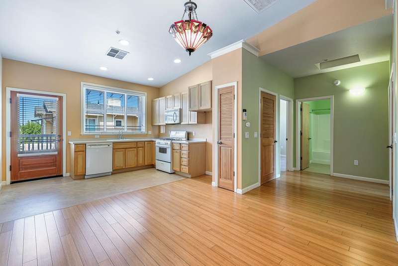 Fantastic 2 Bedroom 2 Bath Condo nestled in the La Querencia Co-Housing Complex of only 28 units. Desirable location w/Clovis North Schools. Unit includes a One Car Garage. Energy efficient w/owned Solar, Tankless Water Heater & dual pane windows. Upscale design with high ceiling throughout and lots of natural light. Striking Bamboo flooring in Living, Dining, Kitchen and Hallway. Living, Dining Room and Kitchen have vaulted ceiling. Inviting balcony patio off of Kitchen area. Vaulted ceilings in Both Bedrooms with full wall closets. Ceiling Fan Light Fixtures in every room. Kitchen has a Gas Range plus a Pantry. Both Bathroom have a Solar Tube Skylight offering additional natural lighting. Stack Washer and Dryer are included. This is a very unique Community and go to www.fresnocohousing.org to learn more about the complex. Low turnover complex and units do not come on the market often. The complex features a Common House w/a Commercial Kitchen and indoor/outdoor dining area. Common House also has a Sitting/Library area w/fireplace, Indoor Playroom, Commercial Laundry Room and a Guest Bedroom/Bath for visiting Overnight Guest to rent by the day. Additional amenities include a Hugh Pool, Spa, Adult Gym, Game Room, Craft Room and Wood Workshop w/extensive tools. Grass and Sand Box Play areas, Community Garden w/Fruit/Citrus trees. HOA fee includes sewer/water/garbage, internet, master fire insurance policy, building maintenance & more. Tremendous Value and Location.