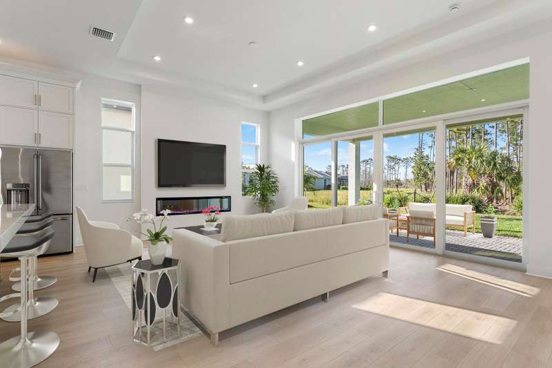 $140,000 in upgrades, New construction! Available for immediate occupancy. Lowest price per sqft in Cove Royale! This gorgeous Lila model is the ULTIMATE IN LUXURY LIVING! 3 (poss. 4)bed 4 bath + flex Oversized gourmet kitchen with gas cooktop, wall oven, 3'' quartz counters, cabinets galore, large pantry and more! Open concept with electric fireplace and oversized sliding impact glass doors opening to covered lanai for abundant light and beautiful preserve views. Wood laminate flooring throughout entire main level & bedrooms. Expanded owners' suite, beautiful ensuite bath with walk in shower and huge walk-in closet. Upstairs bonus room offers full bath & walk-in closet perfect for 4th bedroom, guest suite, game room or office. Convenient to shopping, restaurants, beaches, schools and I95