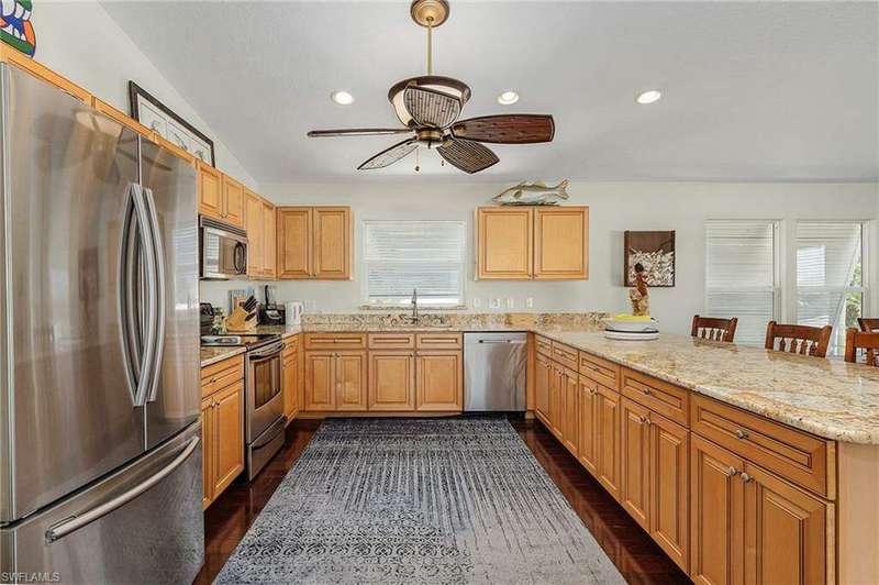 Island Life at its Best! This beautiful home sits on 75ft of waterfront with a newer sea wall on the Northern tip of Bokeelia. This home has 2Bedrooms/2 Bath upstairs, with open floor plan, Florida room and outside porch. Separate downstairs 1 Bedroom/1 Bath, with small kitchen. Covered 7500# Boat lift. With room for additional Boat Docks. Large yard with room for a pool. All windows have Hurricane Shutters. Canal has deep water access minutes to Charlotte Harbor, Boca Grande, Cayo Costa, Cabbage Key, and some of the Best Tarpon Fishing you can find. Home was remodeled after Hurricane Charlie in 2005. This home has an additional 650 ft of living spaces from downstairs area.
