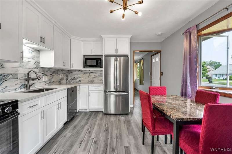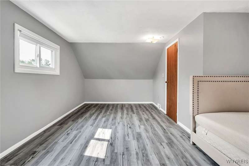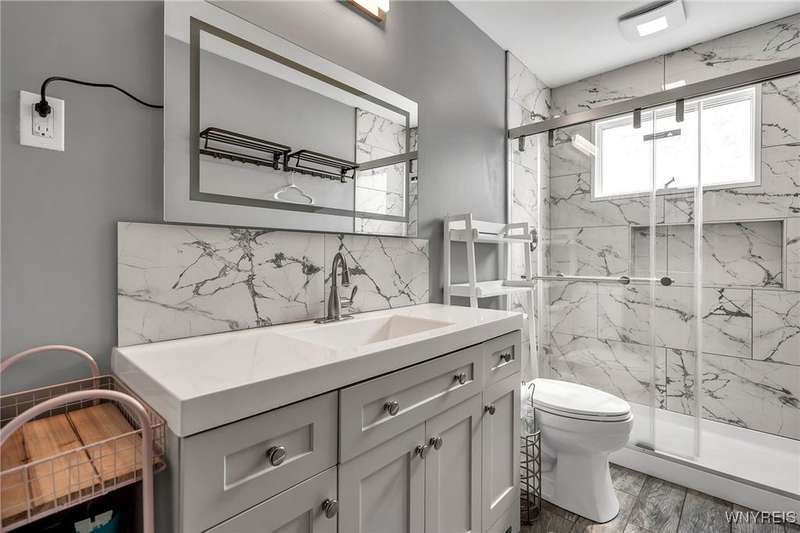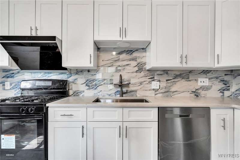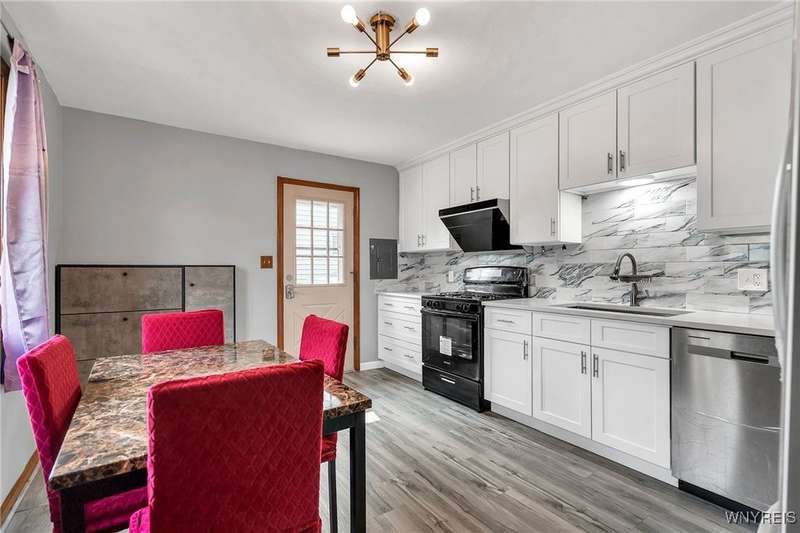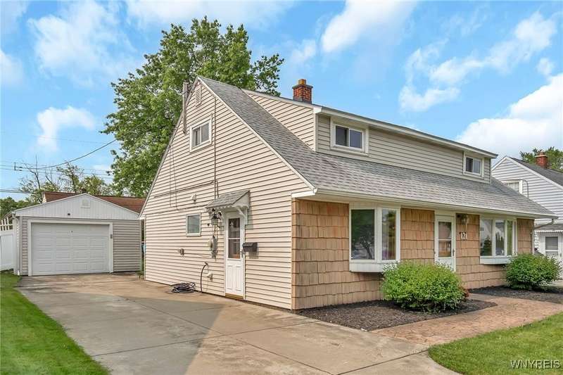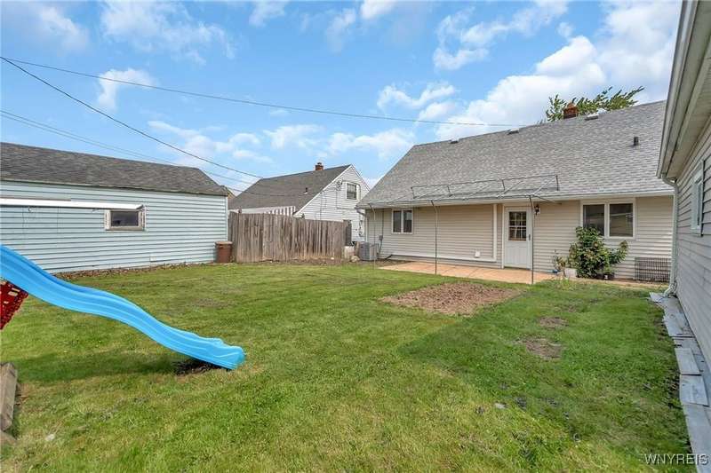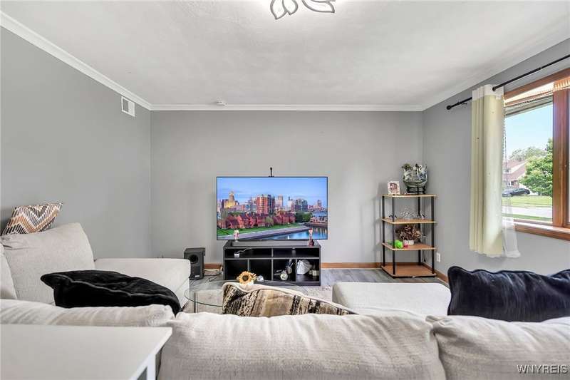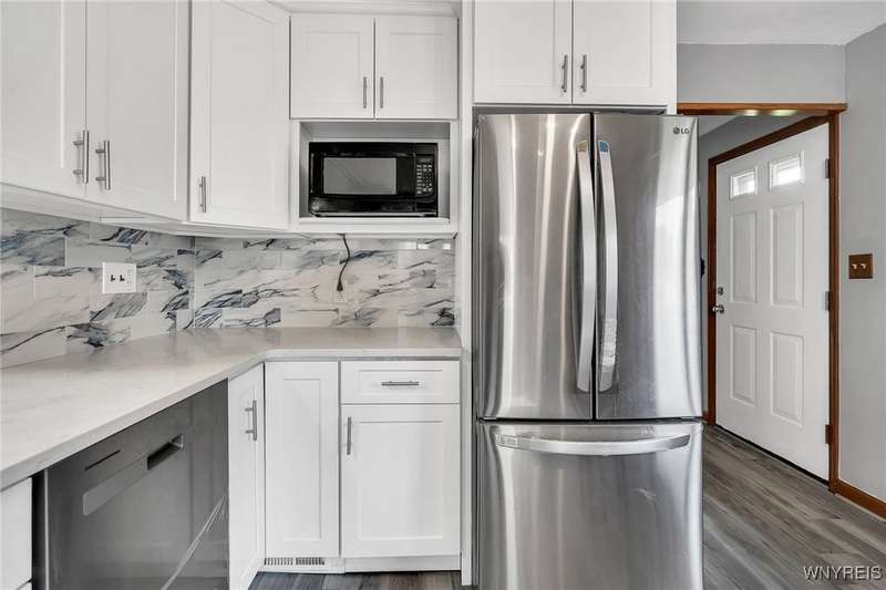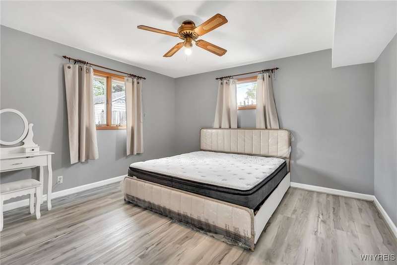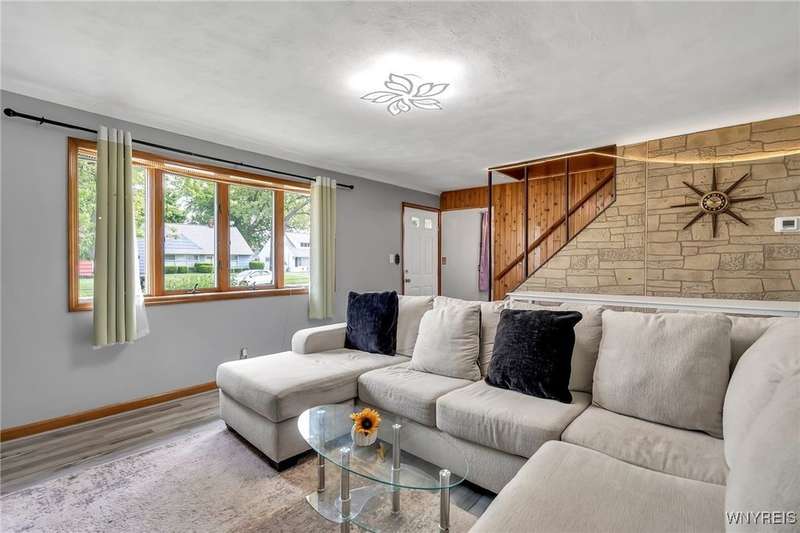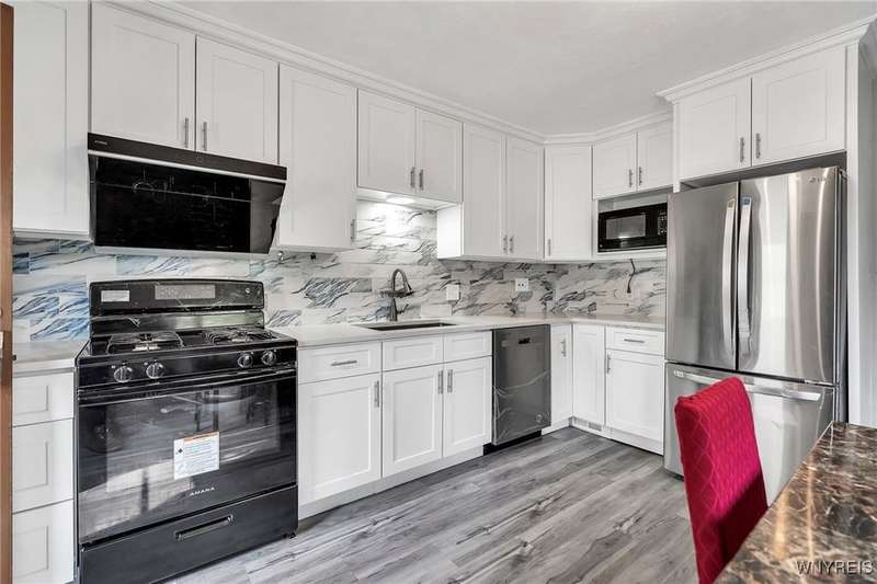 Beautifully updated 4-bedroom, 1-bathroom home located in the desirable Tonawanda neighborhood. Updated kitchen (2023) offers modern cabinetry, quartz countertops, stainless steel appliances, and a large bay window that adds to the charm. The inviting first floor features a bright and airy living room with another large bay window that fills the space with natural light. Enjoy the convenience of two first-floor bedrooms, a fully renovated bathroom (2023), and main-floor laundry. Upstairs, you'll find two additional generously sized bedrooms with ample closet space. Luxury vinyl plank flooring was installed throughout 2023. Central AC 2023. All appliances (2023) are included in "as-is" condition. Step outside to a spacious, partially fenced backyard with a stamped concrete patio and a large removable awning for summer shade. The main roof is only 6 years old, and a new garage roof (2025). Conveniently located near schools, shopping, and transportation, this well-maintained home is move-in ready!