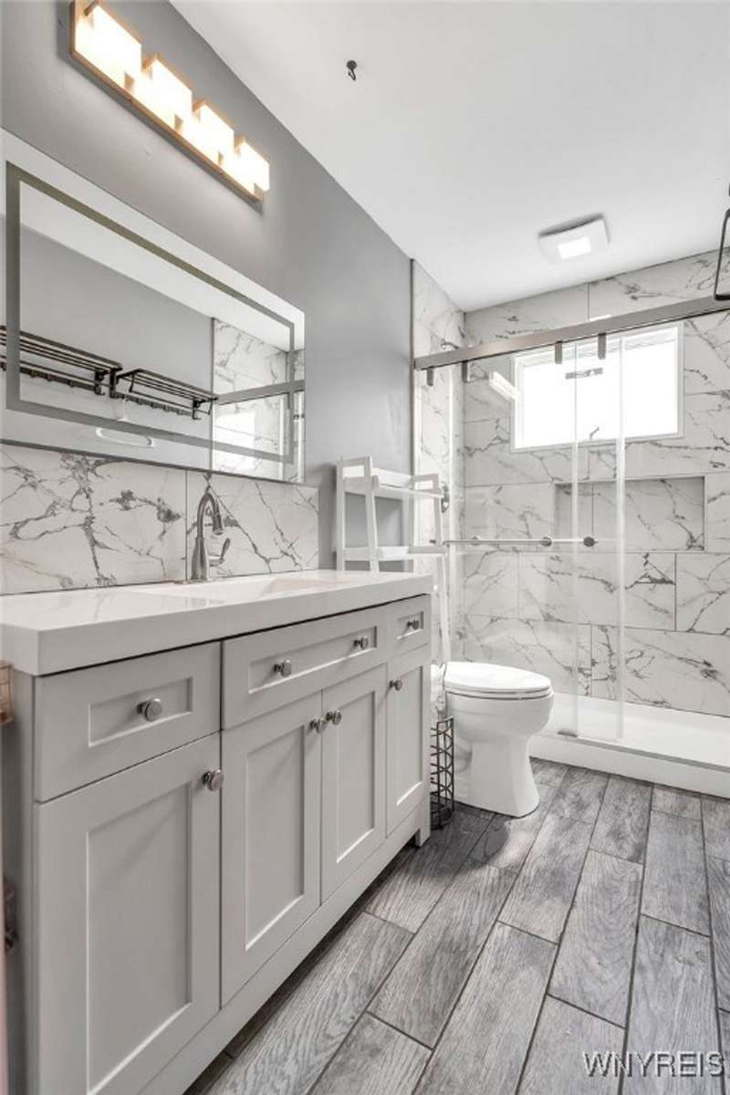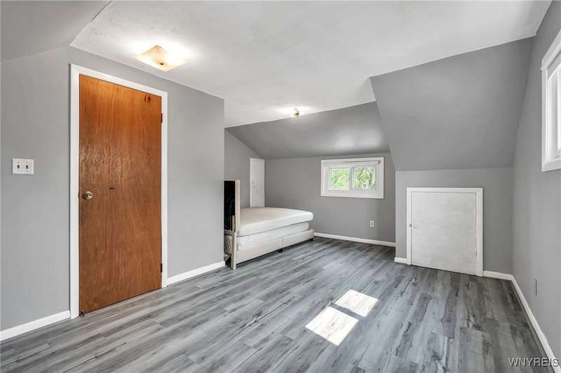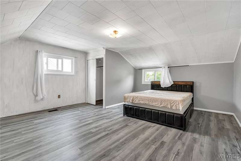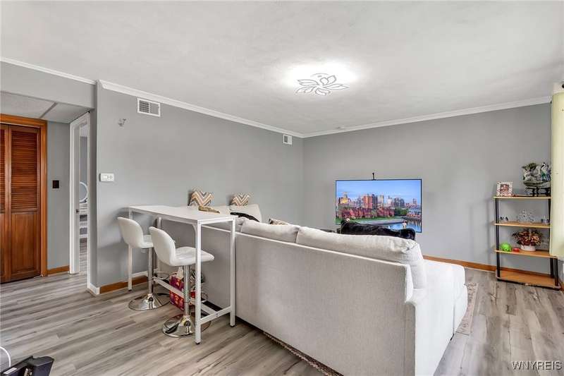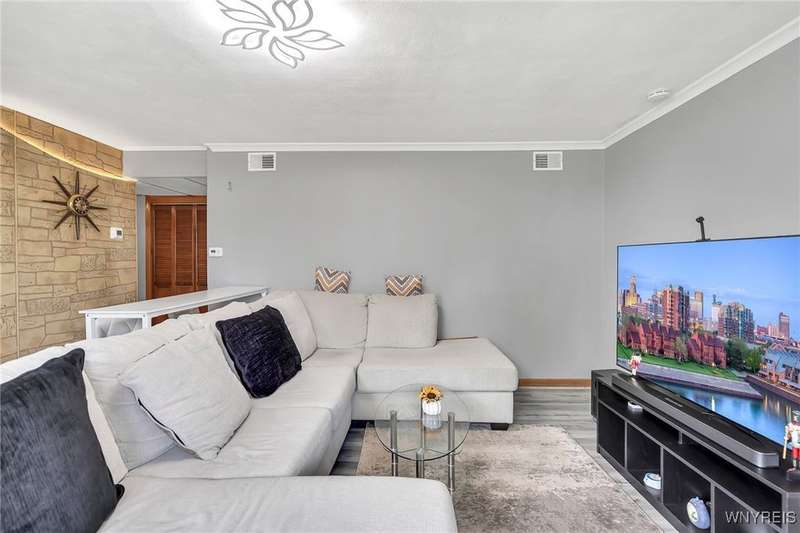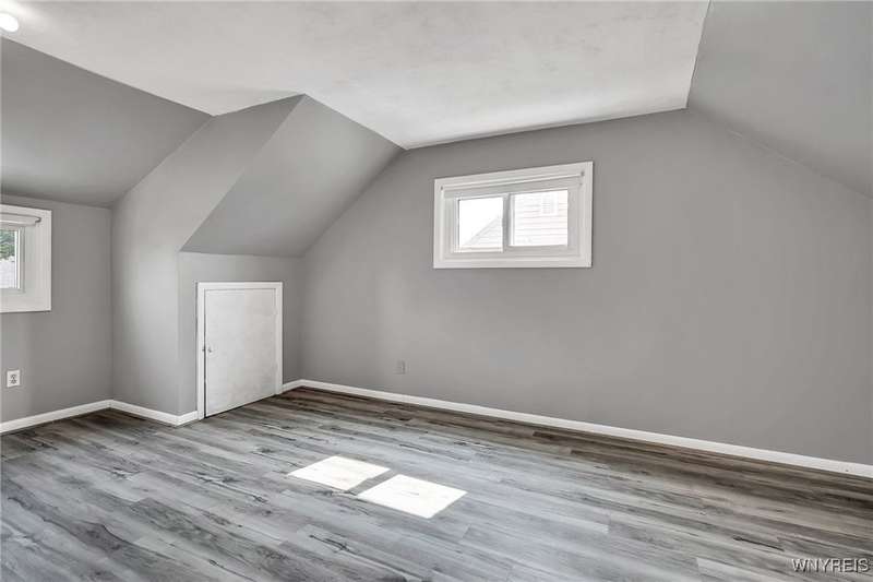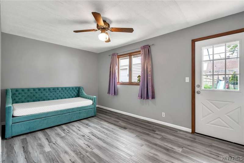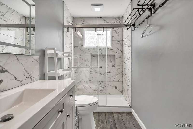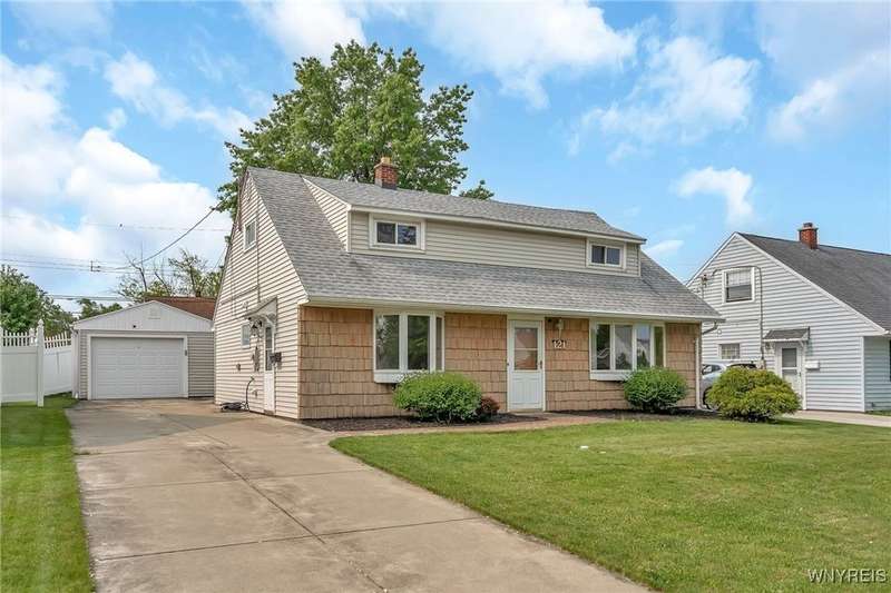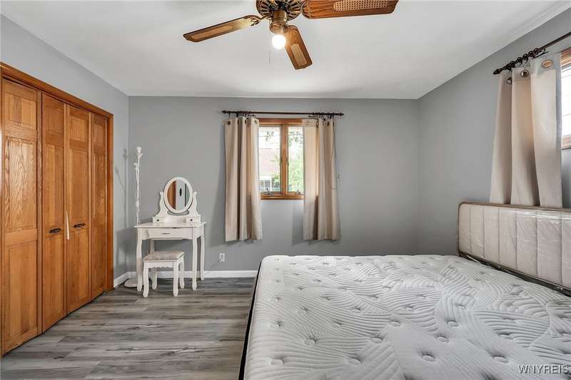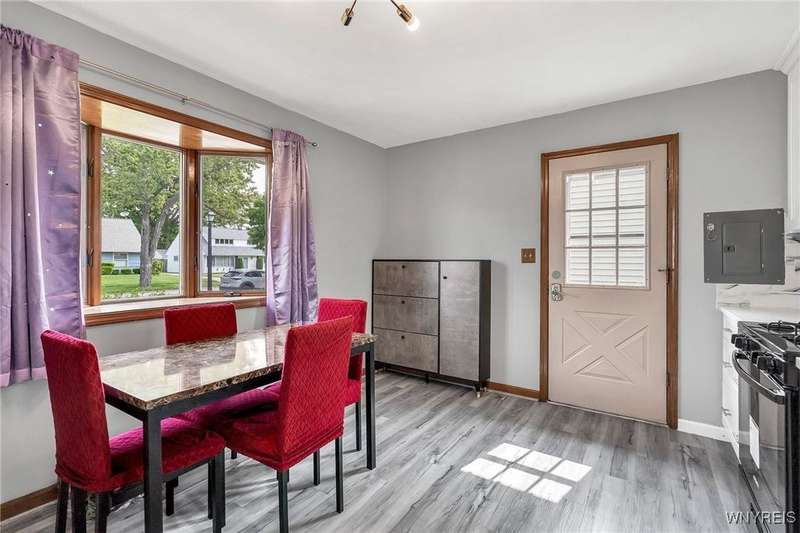 Beautifully updated 4-bedroom, 1-bathroom home located in the desirable Tonawanda neighborhood. Updated kitchen (2023) offers modern cabinetry, quartz countertops, stainless steel appliances, and a large bay window that adds to the charm. The inviting first floor features a bright and airy living room with another large bay window that fills the space with natural light. Enjoy the convenience of two first-floor bedrooms, a fully renovated bathroom (2023), and main-floor laundry. Upstairs, you'll find two additional generously sized bedrooms with ample closet space. Luxury vinyl plank flooring was installed throughout 2023. Central AC 2023. All appliances (2023) are included in "as-is" condition. Step outside to a spacious, partially fenced backyard with a stamped concrete patio and a large removable awning for summer shade. The main roof is only 6 years old, and a new garage roof (2025). Conveniently located near schools, shopping, and transportation, this well-maintained home is move-in ready!