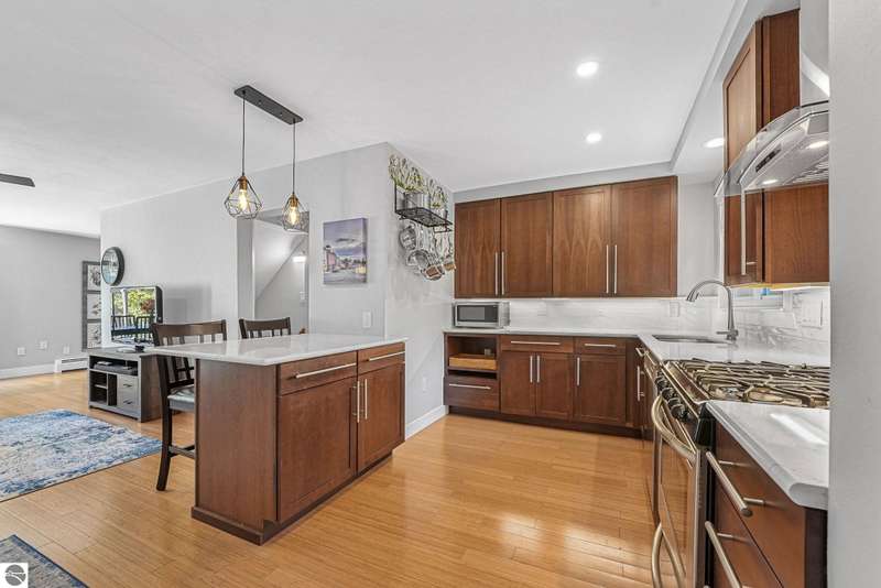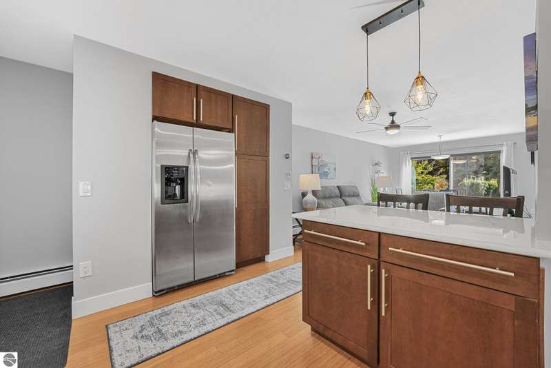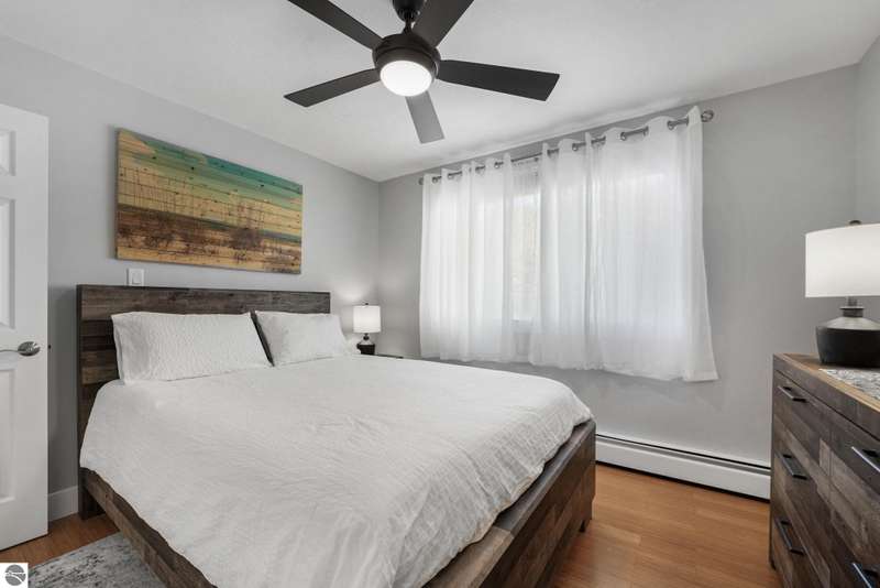 Move in ready! Wonderful opportunity to own in Leelanau County. This 2-story townhouse has been lovingly remodeled with extensive infrastructure updates throughout and attention to detail. Bright and open main floor living with wood flooring throughout. Peninsula style kitchen offers quartz counter tops, stainless appliances and pantry. Dining area includes slider to rear patio. Upper level includes two spacious bedrooms and bath. Full lower level offers additional space or great for storage. Unit sold with furniture included. Dues are $355/mo and include snow removal, lawn, water, sewer, trash removal, and all exterior maintenance. Minutes from Traverse City & Suttons Bay, close to public boat launches and Leelanau trail.