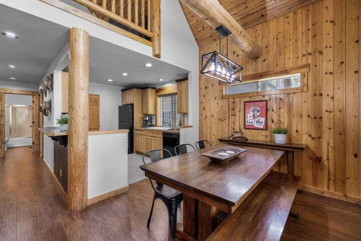 Don't miss your opportunity to own this classic chalet with unique qualities located in the popular golf community of Eagle Crest. The light and open 3 bedroom, 2 bath, great room floor plan is the perfect retreat to enjoy all that Eagle Crest offers. Features include cathedral ceilings, stunning wood beams with iron work detailing, river rock gas fireplace, beautiful new vinyl floorings, and natural wood detailing throughout. Upstairs has a spacious loft w/views and vaulted private primary suite with ensuite bath. Seller updates include new furnace & heat pump, new appliances, beautiful LVP flooring and carpet. The home comes fully furnished turnkey ready for vacation rental or buyer to enjoy. Compare this Chalet to the others, it is a standout! Enjoy the EC amenities; gym, pools, biking, hiking, golfing and resort living. Assumable seller carry option available! HOA installing New roof in 2025.