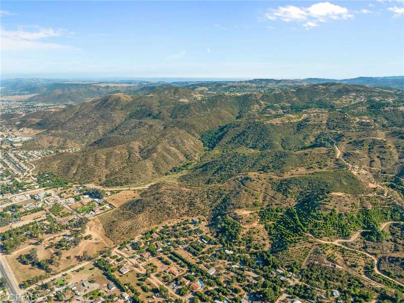 The property spans 168.87 acres of prime Rural Residential zoned land in Wildomar, Riverside County, California. Situated adjacent to both residential and commercial developments, it offers diverse zoning potentials: Rural Residential permits 5-acre minimum lots, while the specific land use category, Rural Mountainous, mandates 10-acre minimum lots. The front section, accessible at street level, allows for 2-acre minimum lots.