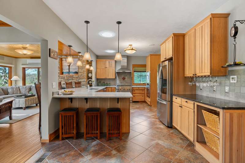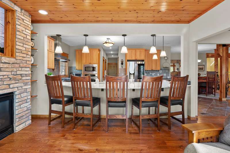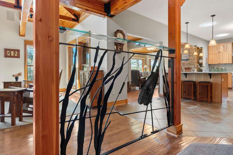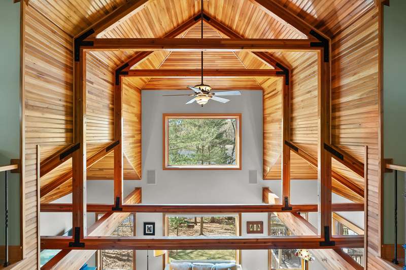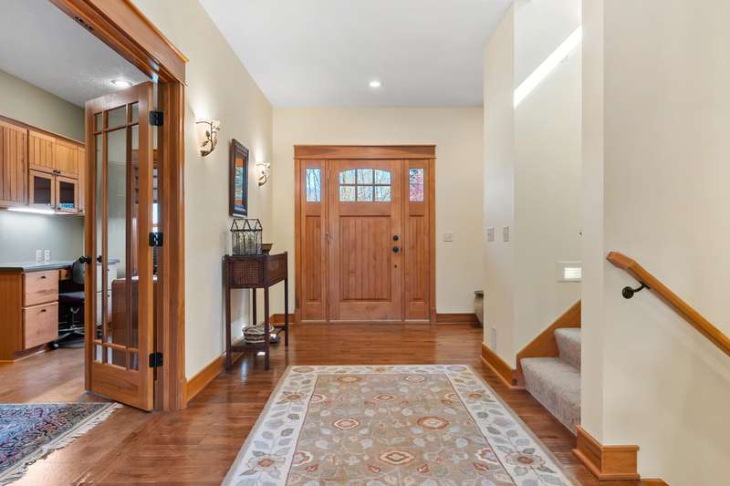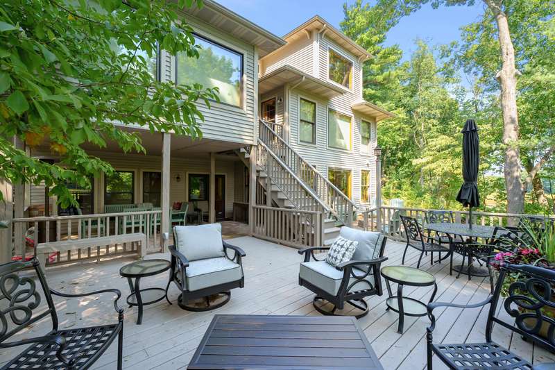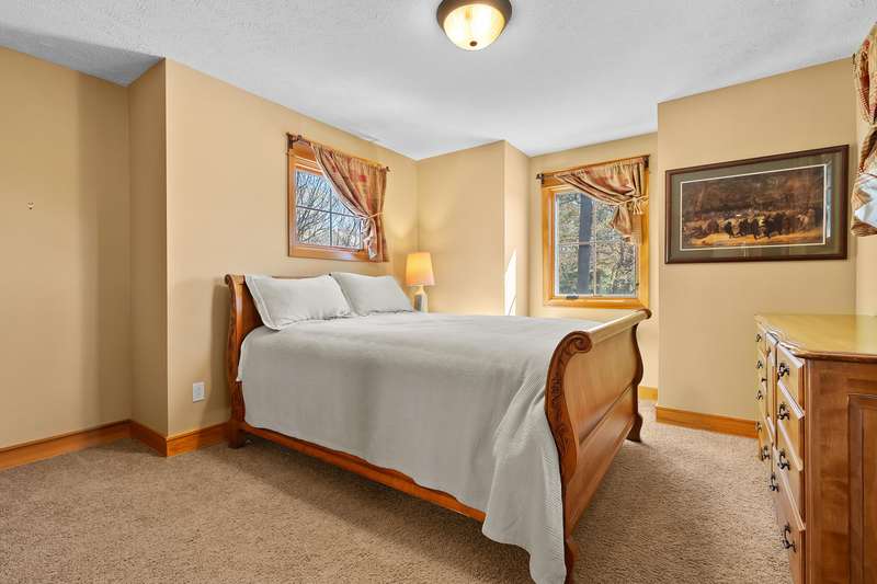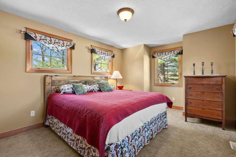 This PRIVATE WATERFRONT home is not to be missed! Custom construction and high-end materials are evident everywhere in this impeccably maintained home on quiet and serene Cranes Pond. 133 feet of frontage, mature trees and active wildlife, while offering maintenance free living! Truly a retreat, this former Parade of Homes star offers beautiful architectural details, roomy, private bedrooms with attached baths, and several light-filled gathering spaces. Large main floor primary suite with private deck, main floor laundry, updated kitchen, eating bars and adjacent sunroom w/ fireplace and water views! Spacious 2nd floor layout overlooks the living room with vaulted ceilings, stone fireplace and scraped wood floors. Bright Walkout basement has kitchenette, 5th bedroom,(more...) and opens to the waterfront deck and patio space. Updated mechanicals, whole-house generator, invisible fence and covered front porch. Private Waterfront for under $800k close to Gull Lake & 5 Golf Courses! This is a house to move for; A home, setting and location like this one is very special!