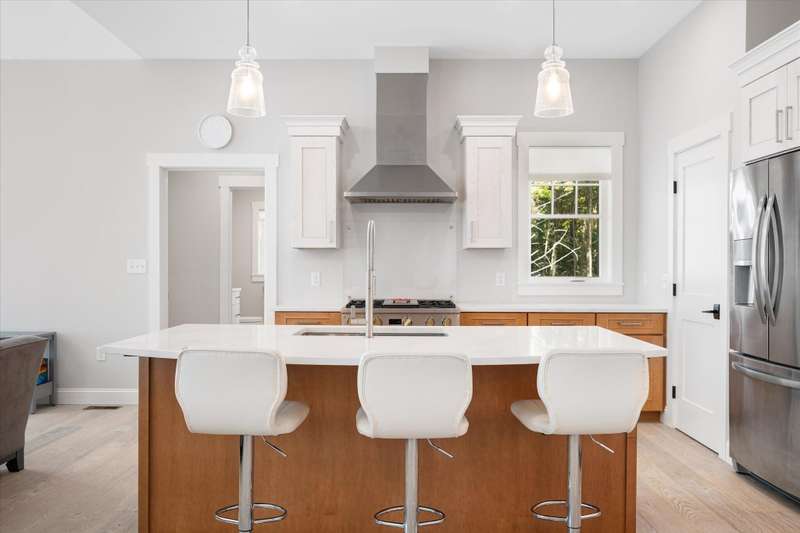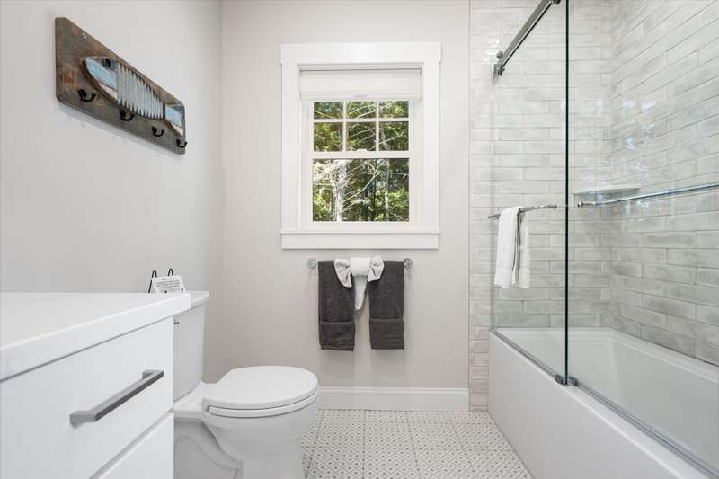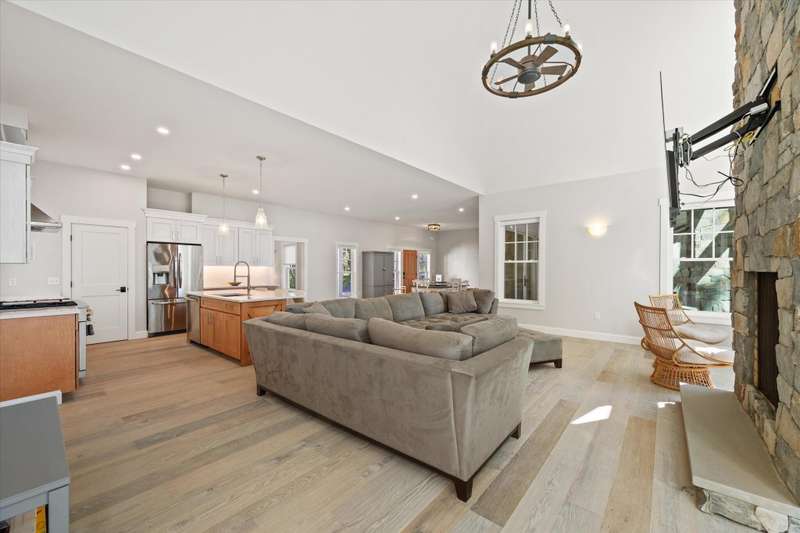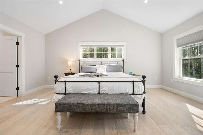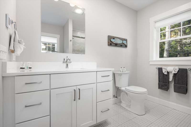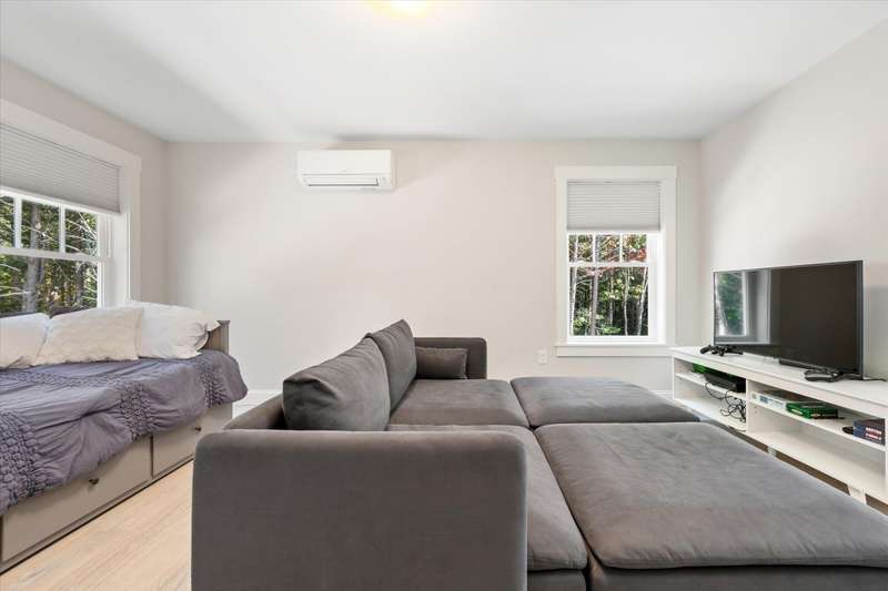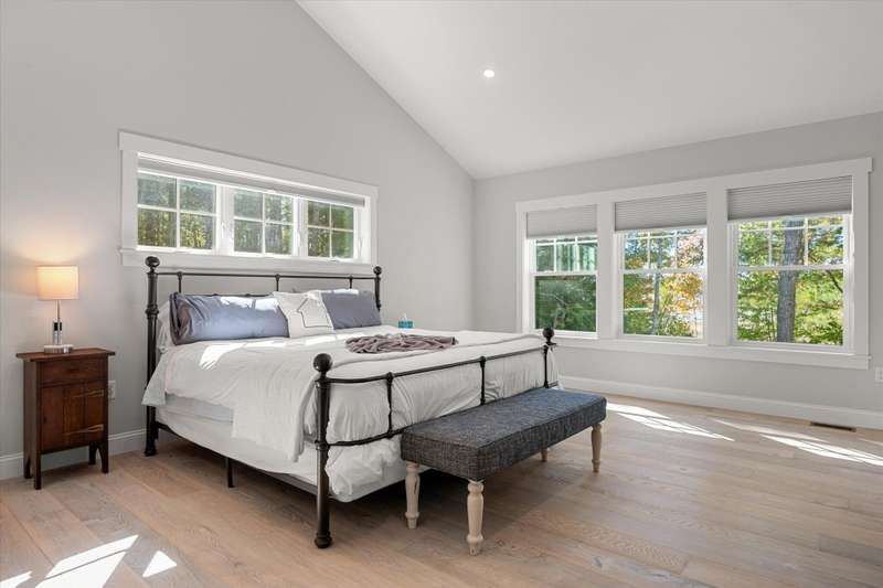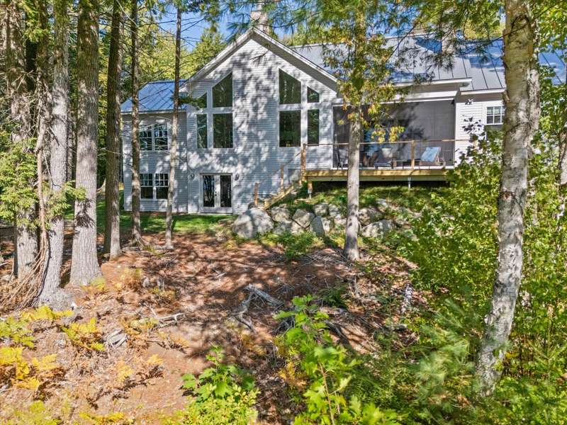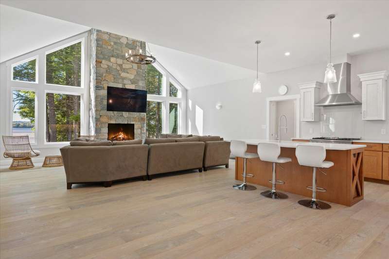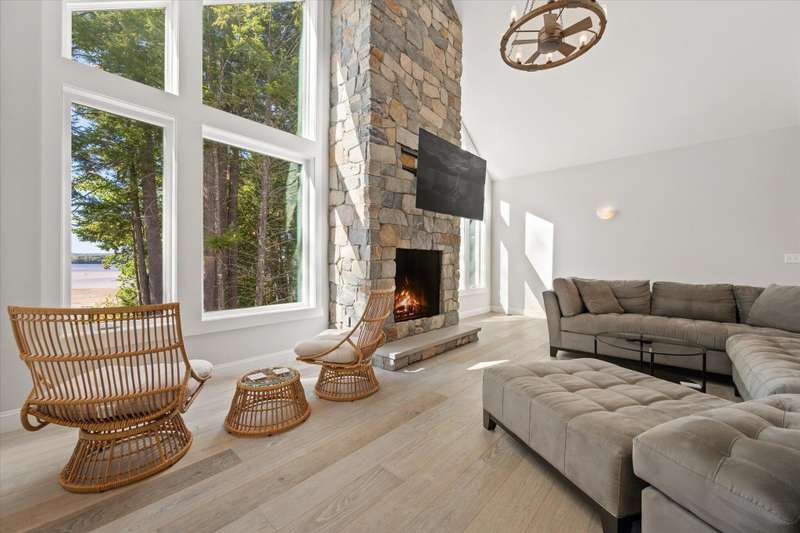 Introducing an architecturally bold lakefront hideaway where design, privacy, and investment potential converge. Custom built in 2023, this residence is tucked at the end of a private road on 3.68 acres—featuring 485 feet of owned water frontage on Graham Lake, a sprawling 7,865-acre playground of fresh water, and backed by protected conservation land. No unexpected neighbors. No compromise. Total seclusion, forever secured. When you step inside, you experience scale, light, and flow. Vaulted ceilings, expansive window walls, and a central stone fireplace create a dramatic yet grounded atmosphere. The chef's kitchen balances form and function with Silestone quartz countertops, bespoke cabinetry, and a suite of premium appliances. The layout is masterfully segmented: a sumptuous primary suite with lake views, radiant bath floors, and walk-in closet anchors one wing. On the opposite end, a guest bedroom and full bath provide privacy. Upstairs, a third bedroom with full bath and flexible bonus room accommodate work, guests, or secondary lounge. Outside, the lifestyle continues: a covered, screened stone terrace with fireplace, integrated TV, and motorized retractable screen delivers four-season entertaining. A sun-drenched back deck opens to sweeping lake views, where a quiet path through the trees leads you down to your private shoreline—waiting patiently for morning paddles, barefoot afternoons, and sunset reflections. The oversized garage isn't just spacious—it's future-ready, outfitted with an integrated EV charging station and room for everything from a boat to your weekend wheels. Proven short-term rental performer, earning 950/night with 5-star reviews. Just 15 minutes to Ellsworth and 30 miles to Acadia National Park. This isn't just a home. It's a legacy-level escape. A one-of-a-kind property where Maine's untamed beauty meets bold, modern living. You can't build this quality, scale, and setting for this price today. Let's Go!