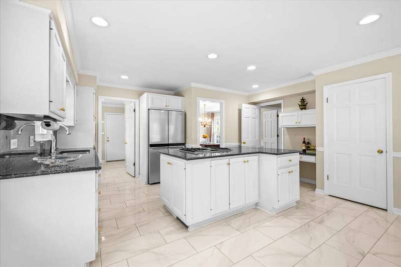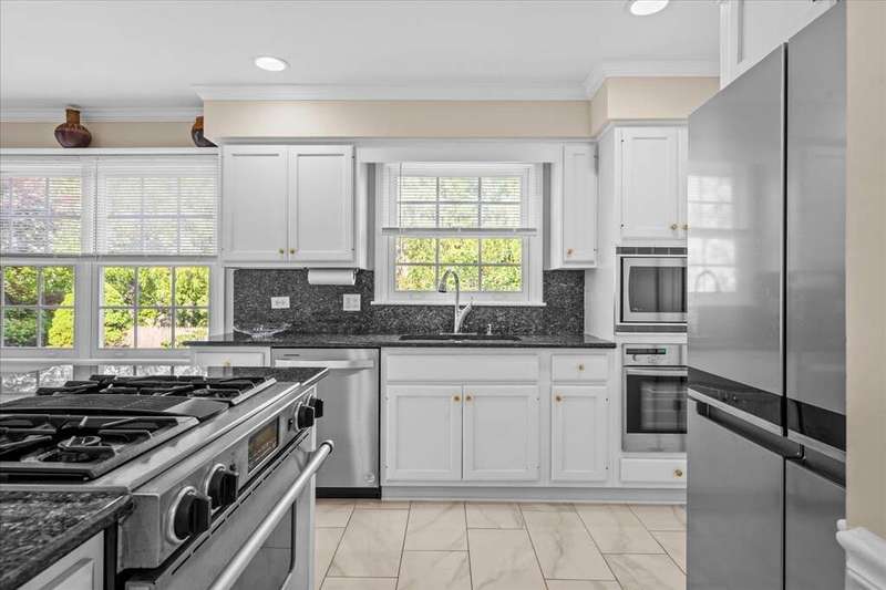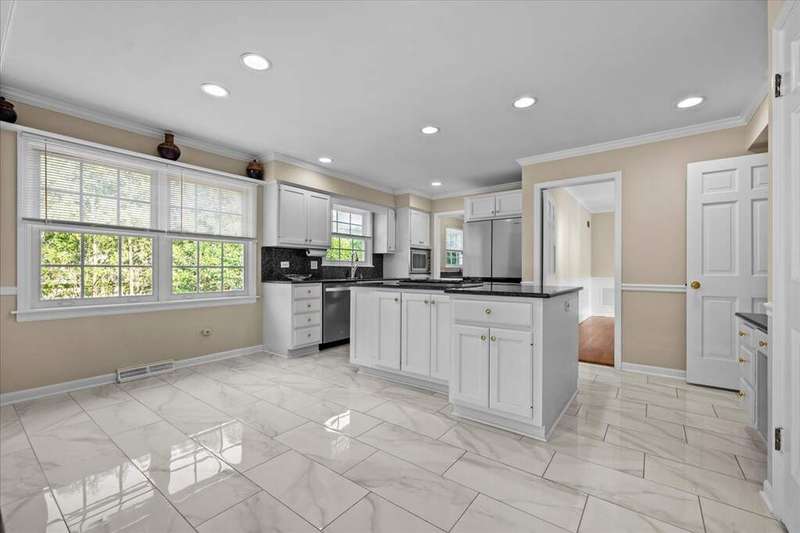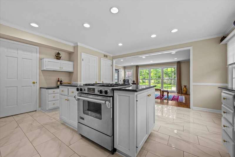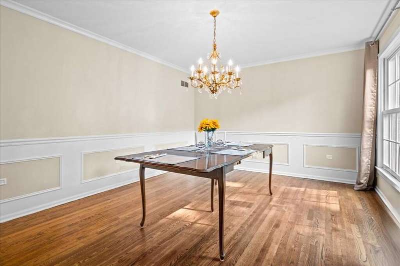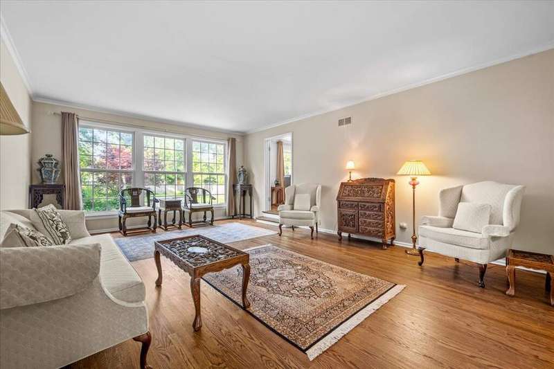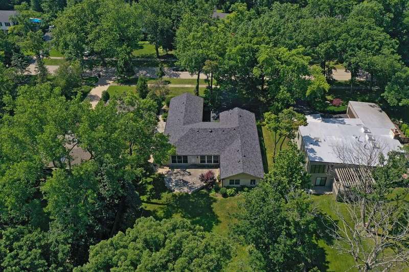 Rare opportunity for single-level living on coveted Morningside Drive! This exceptional 3,221 sq ft all-brick ranch is set on a picturesque .5-acre lot framed by stately oaks in one of the area's most desirable neighborhoods, commonly known as Whispering Oaks. This gem offers spacious living with an updated, open layout and a private backyard oasis. Inside, enjoy solid oak hardwood floors throughout the living room, family room, dining room, and all bedrooms. The rest of the home (including the brightly finished 1,636 sq ft basement), features new white porcelain tile flooring. The eat-in kitchen is updated with white cabinetry, granite countertops, many newer stainless steel appliances (2023 & 2024), a center island, and a planning desk--perfect for everyday living and entertaining. It is wide open to a welcoming family room with a floor-to-ceiling stone fireplace, built-in bookshelves, and expansive windows overlooking the bluestone patio and huge backyard. The four bedrooms are unusually spacious, and the primary suite offers exceptional closet storage and access to the bluestone patio. Notable upgrades include premium Marvin windows throughout the entire home, enhanced attic insulation for superior energy efficiency, a new roof and 5" seamless gutters (complete tear-off in 2023). Laundry is currently in the basement with optional hookups in the mudroom. Located in a walkable neighborhood with sidewalks, you're minutes from Lake Michigan beach access at Fort Sheridan, scenic bike and hiking trails, Metra, Starbucks, and TOP dining options!