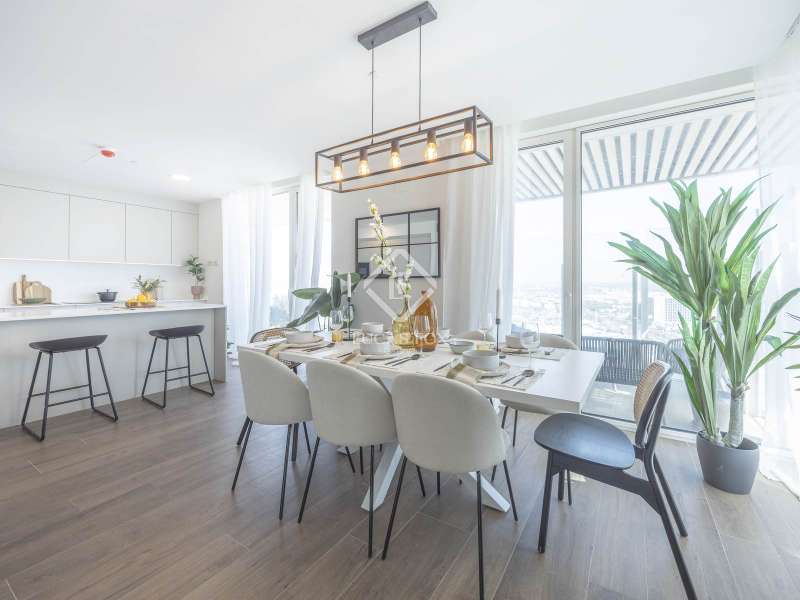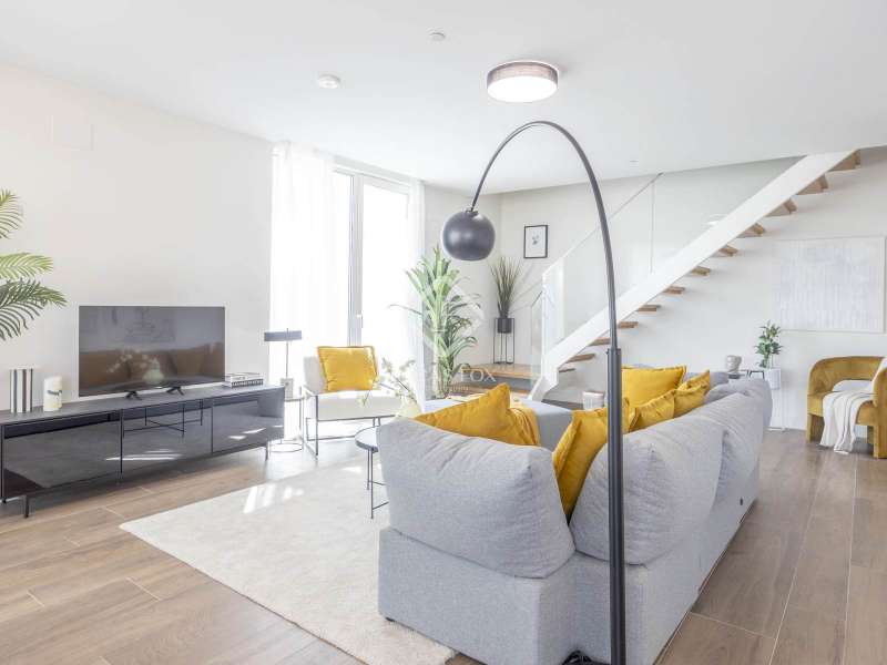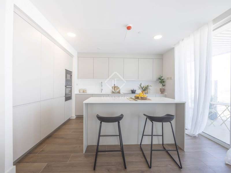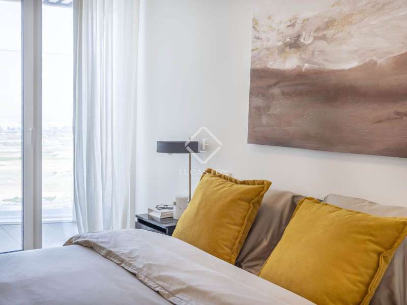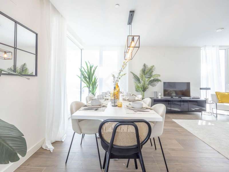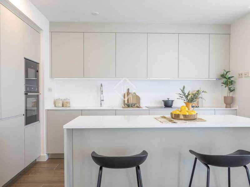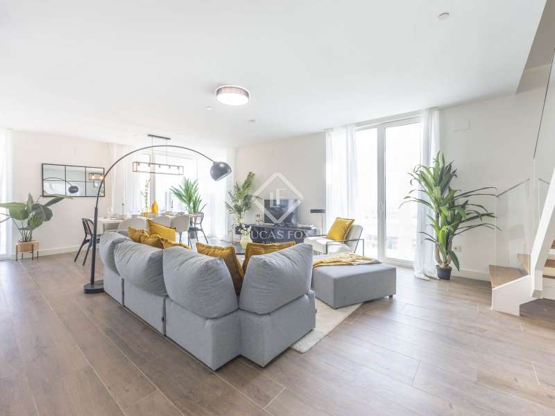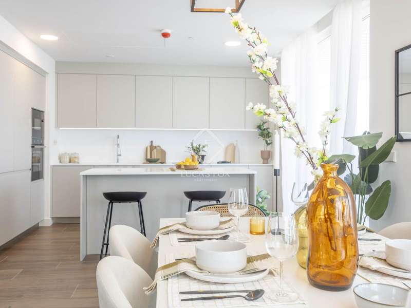 We present one of the most exclusive penthouses of the Ikon project, the new residential icon of the city of Valencia next to the Palacio de Congresos. The penthouse with more than 350 m² built is located on the 29th floor of tower A, from where you can enjoy the best panoramic views of the city. This very special penthouse of the development has excellent panoramic views of the capital and a northwest orientation. It benefits from perfectly distributed spaces and several terraces in different orientations, as well as an immense solarium on the upper floor. The penthouse is distributed over two floors. The living areas of the home are located on the access floor, while its large solarium with the option of a jacuzzi occupies the upper floor. The day area consists of a large living room with several windows and access to a large front terrace. Next to this space, there is a guest bathroom and the kitchen with island, dining area and access to the terrace. On the opposite side, there is the night area, made up of three double bedrooms and with large wardrobes. The master bedroom enjoys its private bathroom. The three bedrooms are exterior facing and have access to several terraces or have large corner windows that offer magnificent exterior views. The penthouse extends from the interior to the terraces, which with their large windows, present us with panoramic views of the city skyline; thus from the private space itself, a unique atmosphere is created where the blue sky and the urban landscape are part of the home. In it, the architecture reaches its maximum degree of design and quality, as can be seen in the decoration, layout and finishes, as well as the brands used and the sunny aspect of the home. The choice of materials and finishes, with their surfaces and textures, achieve an effect of integration and continuity, transmitting a feeling of purity and timelessness. Get in touch for detailed information on this exclusive penthouse located in the city's new residential icon, where dreams come true.