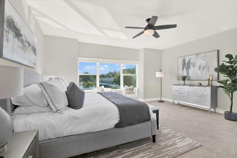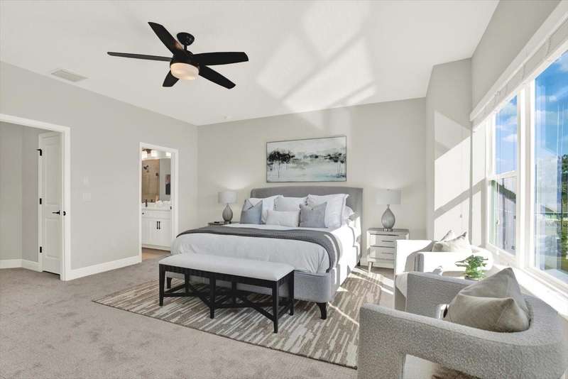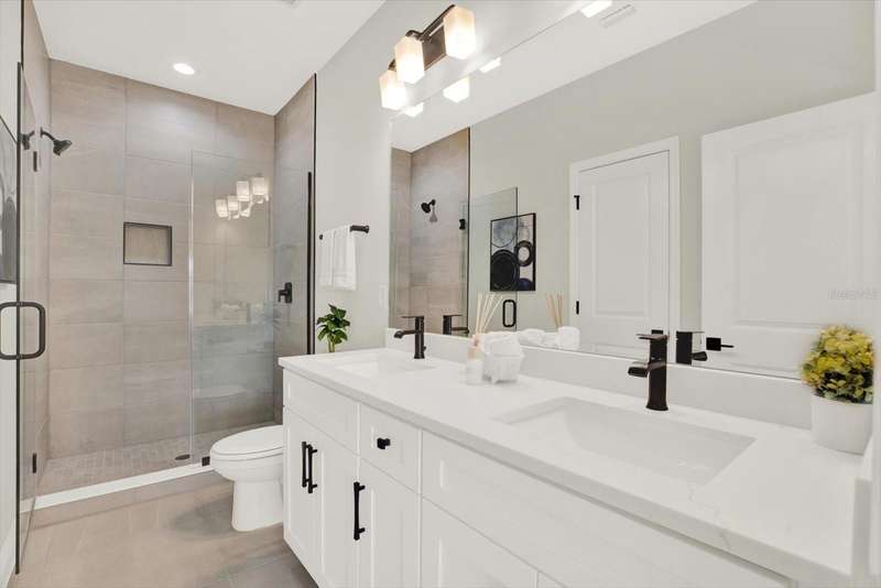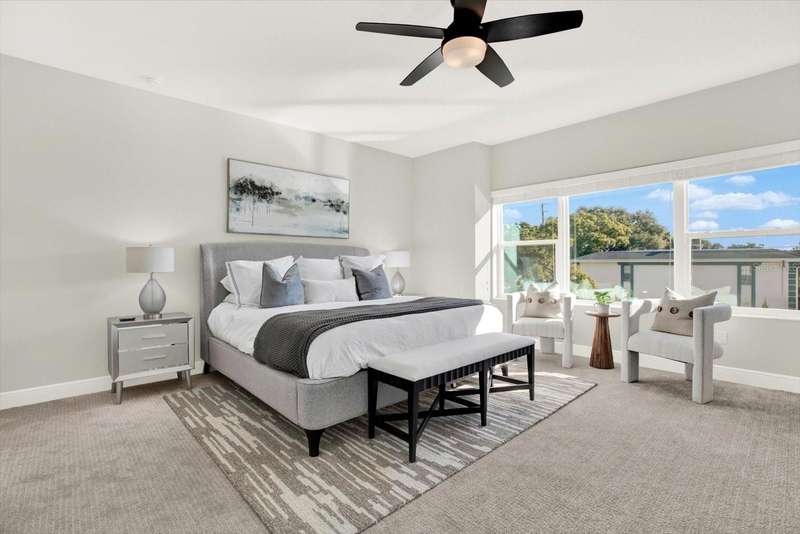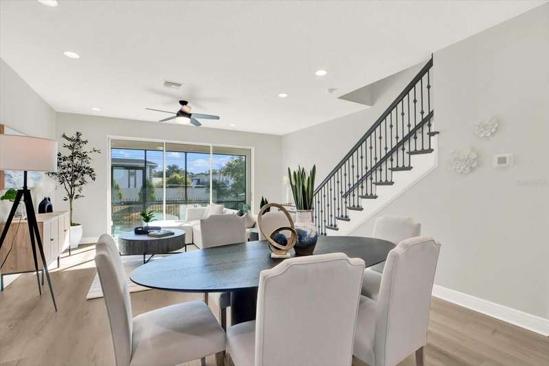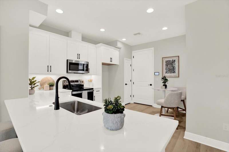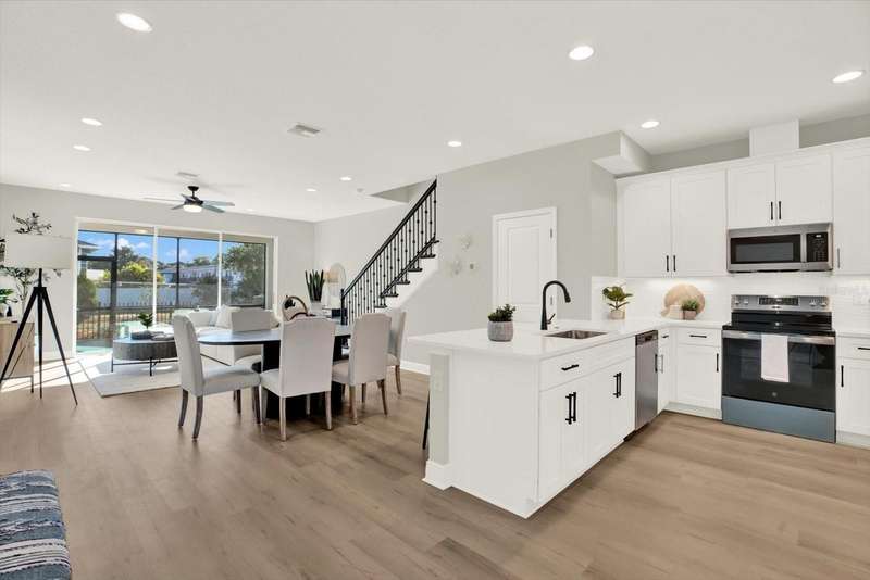 MOVE-IN READY BRAND-NEW 3BR/2.5BA TOWNHOUSE WITH MODERN LUXURY THROUGHOUT! This brand-new, move-in ready townhome features a bright, open floor plan with white designer kitchen cabinetry, quartz countertops, and luxury vinyl plank flooring throughout the first floor. Large windows and 8’ sliding glass doors flood the space with natural light, creating a warm and welcoming atmosphere. The staircase, finished with solid oak treads and black aluminum balusters, adds an elegant touch as it leads to the second floor. Upstairs, the primary suite is spacious and filled with natural light, featuring a WALK-IN CLOSET and a luxury ensuite with quartz countertops and dual undermount sinks. Secondary bedrooms are generously sized, providing comfort for family or guests. Located in a low-traffic, peaceful neighborhood, this home comes with builder warranties and offers modern, turnkey living for immediate occupancy. ULTRA LOW HOW DUES OF JUST $253/MONTH include exterior lawn maintenance, roof, pest control and more! Schedule your showing today — this home is ready for you now!