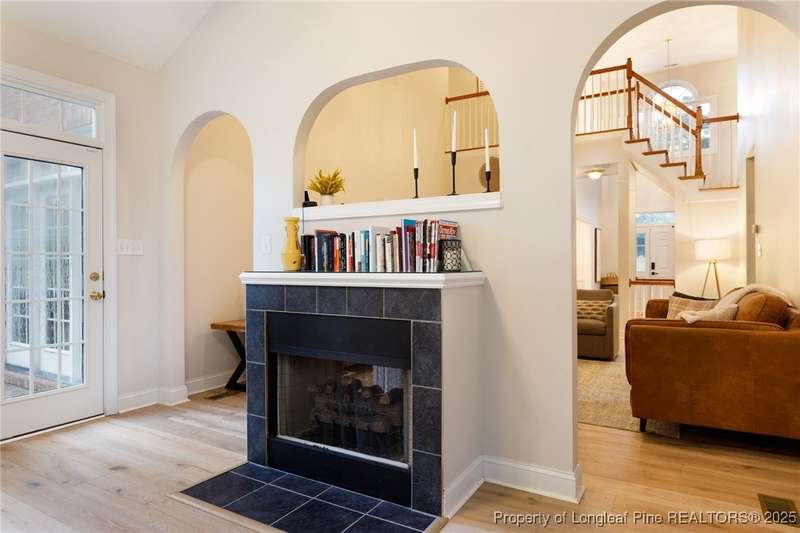 Located in desirable Vanstory Hills, this mostly brick 4BR/3.5BA home offers 2 stories plus a walk-out basement perfect for a rec room, gym, or 5th bedroom, complete with its own bathroom and refrigerator. Built in 2003, it features 9' ceilings down, a 2-story foyer, 2 story living room, vaulted ceiling in the sunroom, and a double-sided fireplace connecting the sunroom and living room. Light-filled with hardwoods throughout main living areas. Secluded office for privacy, spacious owner's suite, and abundant storage. Enjoy new deck, patio, and retaining walls, plus a new roof (2023).