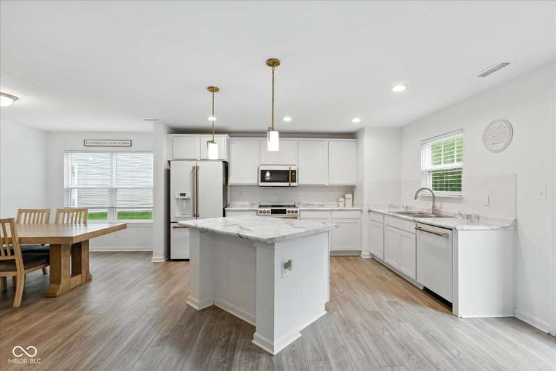 Beautiful home that shows like a model! Large open foyer let's the tone for this open floor plan. New Vinyl plank flooring covers the entire first floor. The floor plan has space up from for sitting room or office. Then there is a formal dining room area. The big room has lots of windows and is open to this gorgeous kitchen! The kitchen has tons of counter space & cabinets and is set off with the beautiful GE Cafe appliances!!! WOW Island has overhang for a breakfast bar area. Updating lighting throughout this home and tons of recessed lighting as well help to give such an updated feeling. The loft is HUGE and has plenty of room to add an extra bedroom and still has a big loft area. The laundry room upstairs. The primary bath has lots of floor space giving room to the double vanity sink, walk-in shower and walk-in closet. Bedrooms 2 & 3 also have walk-in closets. Home has a High-Eff Furnace. The backyard is very private with the tree line in back.
