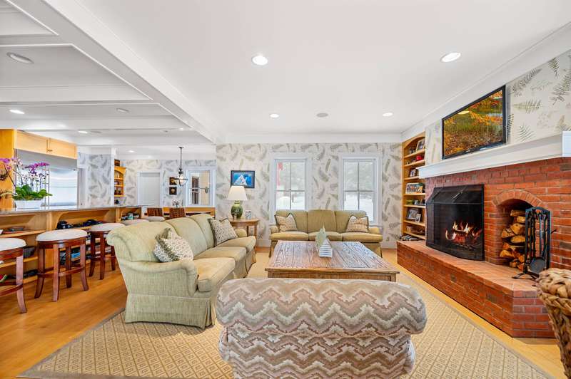 Imagine waking up to breathtaking mountain views on your own private 28 -acre sanctuary, just minutes from Stowe's vibrant village and the world class Stowe Mountain Resort. This charming 8-bedroom farmhouse offers the perfect blend of rustic charm and modern amenities. Gather friends and family in the spacious gourmet kitchen, warmed by a crackling fireplace, or relax by the fire in the family room after a day on the slopes. Adjacent to the kitchen is a dedicated office with inspiring views that bring Vermont inside. Enjoy elegant evenings in the formal dining room and living room, complete with a gas fireplace. Four newly renovated bedrooms with ensuite baths and central air ensure ultimate comfort. The finished basement offers fantastic entertainment space equipped with everything from a pool table to video games. The outdoor kitchen and patio beckon for summer gatherings on your private baseball field and the tranquility of your private pond and hot tub provide space to unwind ...