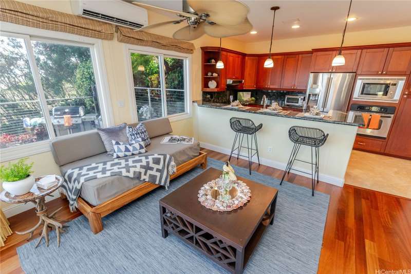 Priced below Appraisal Value -for Immediate Sale and Great Value. Wake up to glowing sunrises over the Pacific and the tranquil feeling of being worlds away-while still just minutes from Aina Haina Shopping Center and Kahala Mall. This executive-style residence in the prestigious, gated community of Kahala Kua offers the perfect blend of seclusion, security, and convenience. Perched on a rim lot at an elevated position, the home captures sweeping ocean, coastline, and Koko Head views, inviting cool breezes and endless natural light. The floor-to-ceiling glass, open-concept layout, and expansive lanais blur the line between indoor comfort and outdoor splendor. Featuring 4 bedrooms and 3 bathrooms, this thoughtfully designed property includes multiple living spaces, a well-appointed kitchen, hardwood floors, and a private pool and jacuzzi set against postcard-worthy vistas. This is a two story home with one bedroom downstairs and 3 bedrooms including the primary on the second level. There is a longer driveway to experience this view. This is more than a home-it's a private retreat for those who value views, lifestyle, and the quiet luxury of being above it all.