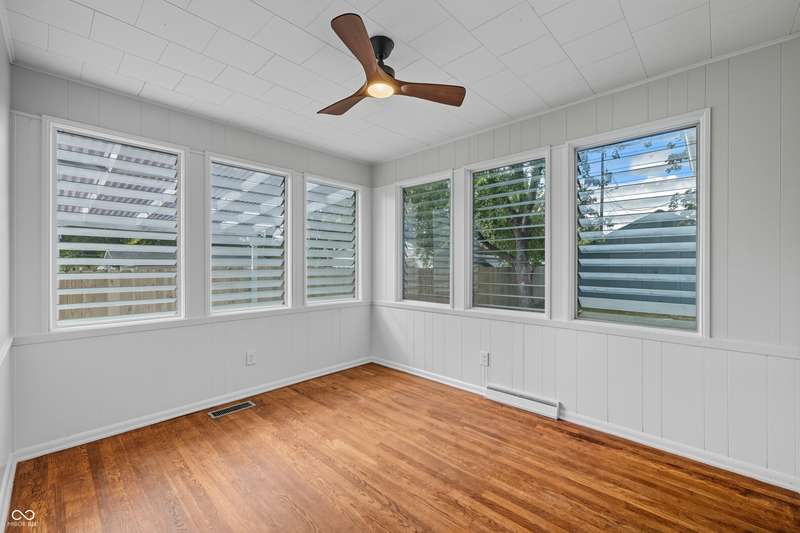 Welcome to 2026 Calhoun Street, a beautifully updated 3-bedroom, 2-bath home just minutes from Downtown Indianapolis, Fountain Square, major highways, shopping, and dining. Enjoy a bright living room with hardwood floors throughout, spacious bedrooms with ceiling fans, and a sun-filled dining area perfect for morning coffee. The home features an updated bathroom with a tiled tub surround and a modern vanity, new windows, and a new water heater. The owner's suite includes a walk-in closet and a private shower. Outside, a fully fenced backyard is ideal for pets and entertaining, and the large storage building offers potential to convert into a 2-car garage. Relax on the covered front porch or use the new concrete parking pad for added convenience. A move-in-ready home offering style, comfort, and an unbeatable location!
